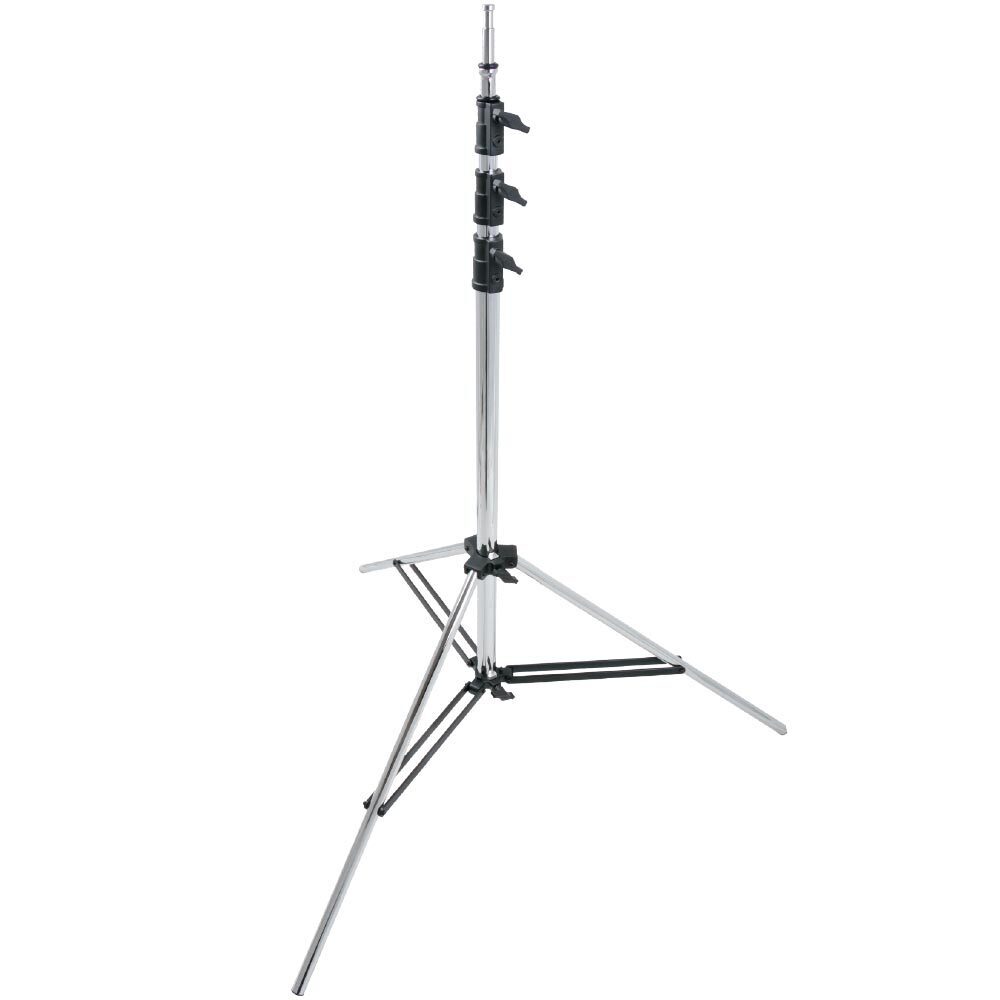Стойка KUPO 145M HEAVY DUTY BABY STAND - это прочная и универсальная стойка из хромированной стали, подходящая для различных задач. Четырехсекционная стойка выдерживает нагрузку до 13 кг, ее максимальная рабочая высота составляет 400 см, а минимальная 135 см. Благодаря приваренному к верхней секции штифту 5/8" (16 мм), стойка надежно удерживает оборудование и долговечна в использовании. Цельнолитые алюминиевые рукоятки в сочетании с резьбовыми вставками Helicoil из нержавеющей стали, обеспечивают прочную фиксацию секций. Ноги стойки оснащены накладками из полиамида PA66, защищающими как ногу, так и поверхность пола. Двойные распорки обеспечивают повышенную устойчивость. Отдельно можно приобрести комплект колес KC-080R, чтобы легко перемещать стойку во время работы в студии.