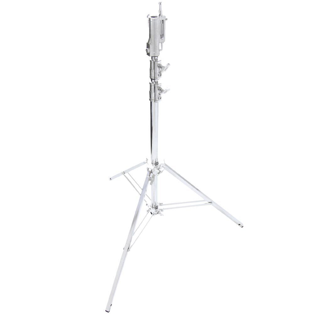 Стойка KUPO 542M MASTER CINE STAND - это прочная стальная стойка с универсальной головкой с гнездами 1/8" (28 мм) и 5/8" (16 мм) и разнонаправленным штифтом 5/8" (16 мм). Стойка выдерживает нагрузку до 40 кг, а ее максимальная рабочая высота составляет 3,5 м. В конструкции предусмотрена выравнивающая ножка для неровных поверхностей и двойные распорки для дополнительной прочности и устойчивости. Цельнолитая алюминиевая рукоятка в сочетании с нержавеющим винтом обеспечивает надежную и долговечную работу. Литое основание оснащено вставкой Helicoil из нержавеющей стали, обеспечивающей прочное резьбовое соединение. Верхняя часть основания оснащена крючком для удобного хранения на стеллаже. Кроме того, на стойке предусмотрена проушина для установки комплекта ветрозащиты (приобретается отдельно). Каждая нога стойки оснащена накладкой для ног из полиамида PA66, защищающей как ногу, так и поверхность пола. Кроме того, ноги оснащены большими тормозными педалями для быстрой и надежной фиксации.