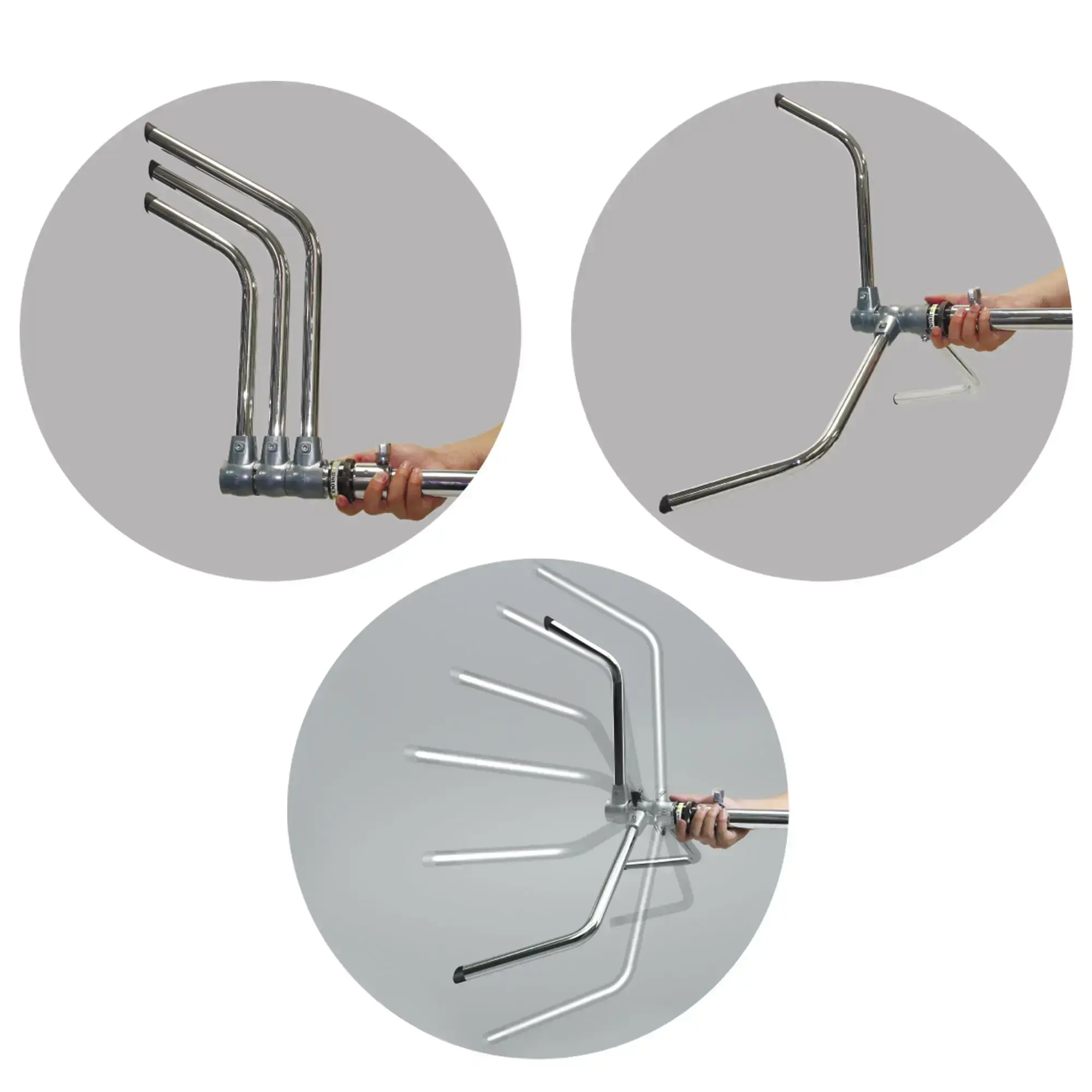 Штанга представляет собой 50 см отрезок стальной трубы диаметром 5/8 дюйма (16 мм) с шестигранным штифтом на одном ее конце и 2- 1/2" поворотной муфтой на другом. Поверхность штанги имеет нескользящую шероховатую фактуру для того чтобы она надежно удерживалась в муфте. Головка 2,5" состоит из пары вращающихся алюминиевых дисков, прикрепленных к гнезду 5/8" (16 мм). Диски оснащены четырьмя V-образными тисками разного размера для крепления любых аксессуаров с 5/8", 1/2", 3/8" или 1/4" крепежными штифтами или трубками. V-образные зажимы имеют зубцы, которые надежно захватывают все, что установлено между пластинами. Головка оснащена эргономичной Т-образной рукояткой увеличенного размера и подшипниками, обеспечивающими максимальный крутящий момент.