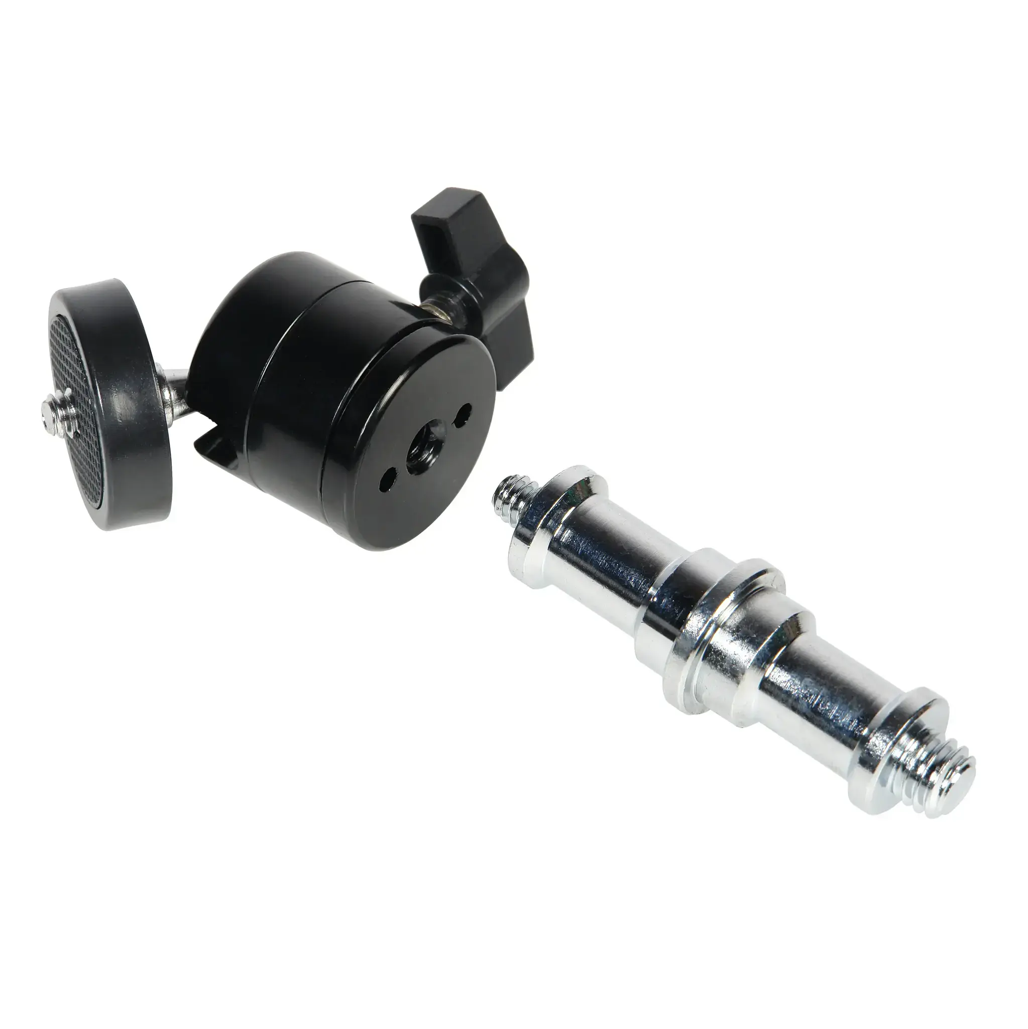 Шаровая головка установлена на съемный стандартный адаптер-шпигот 5/8” с резьбами на концах 1/4” и 3/8”.