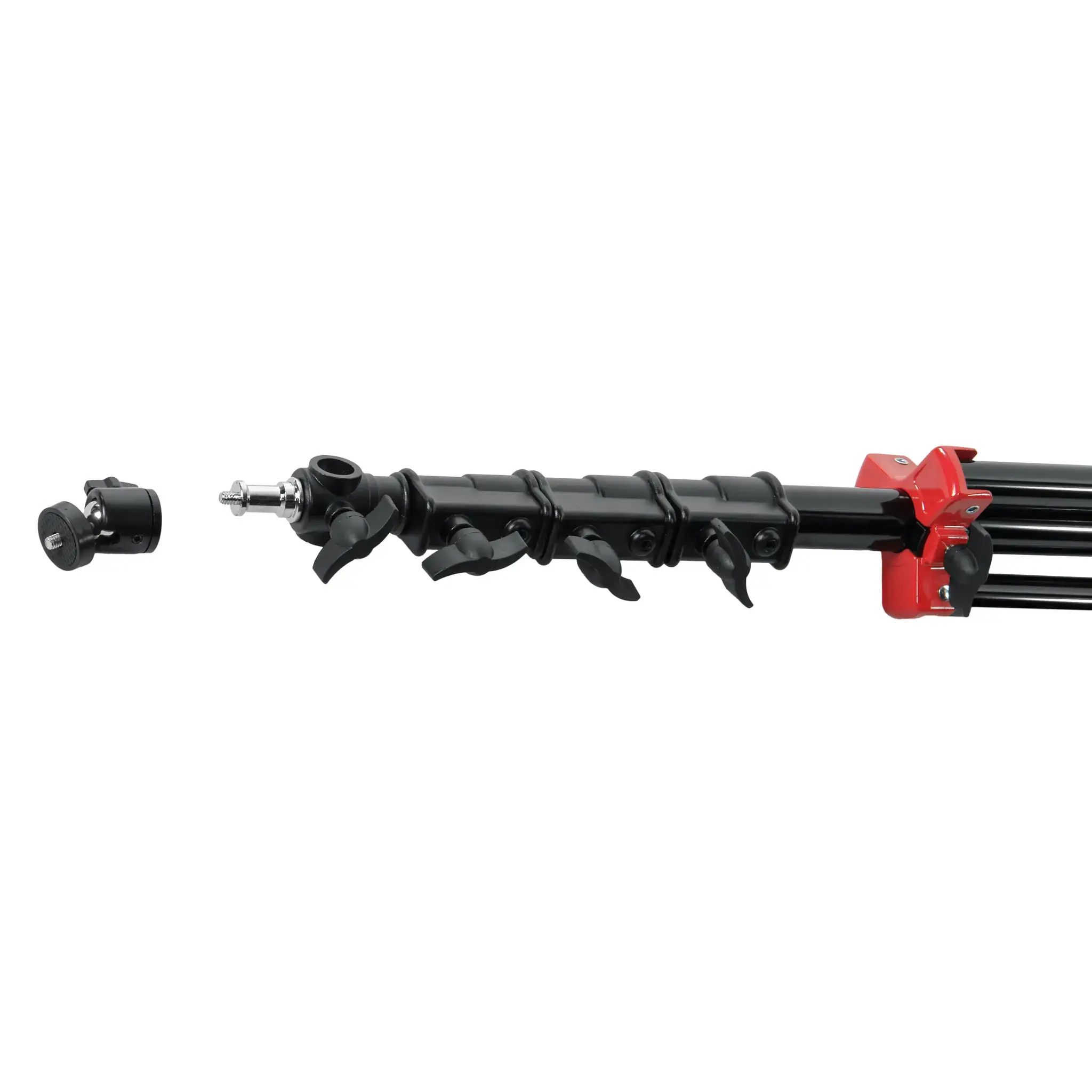 Фото- или видеокамеру можно установить на стойку с помощью универсального съемного адаптера диаметром 5/8 дюйма (16 мм) с резьбовым соединением 1/4 дюйма и 3/8 дюйма. Шпигот может устанавливаться горизонтально, что дополнительно расширяет возможности крепления оборудования.