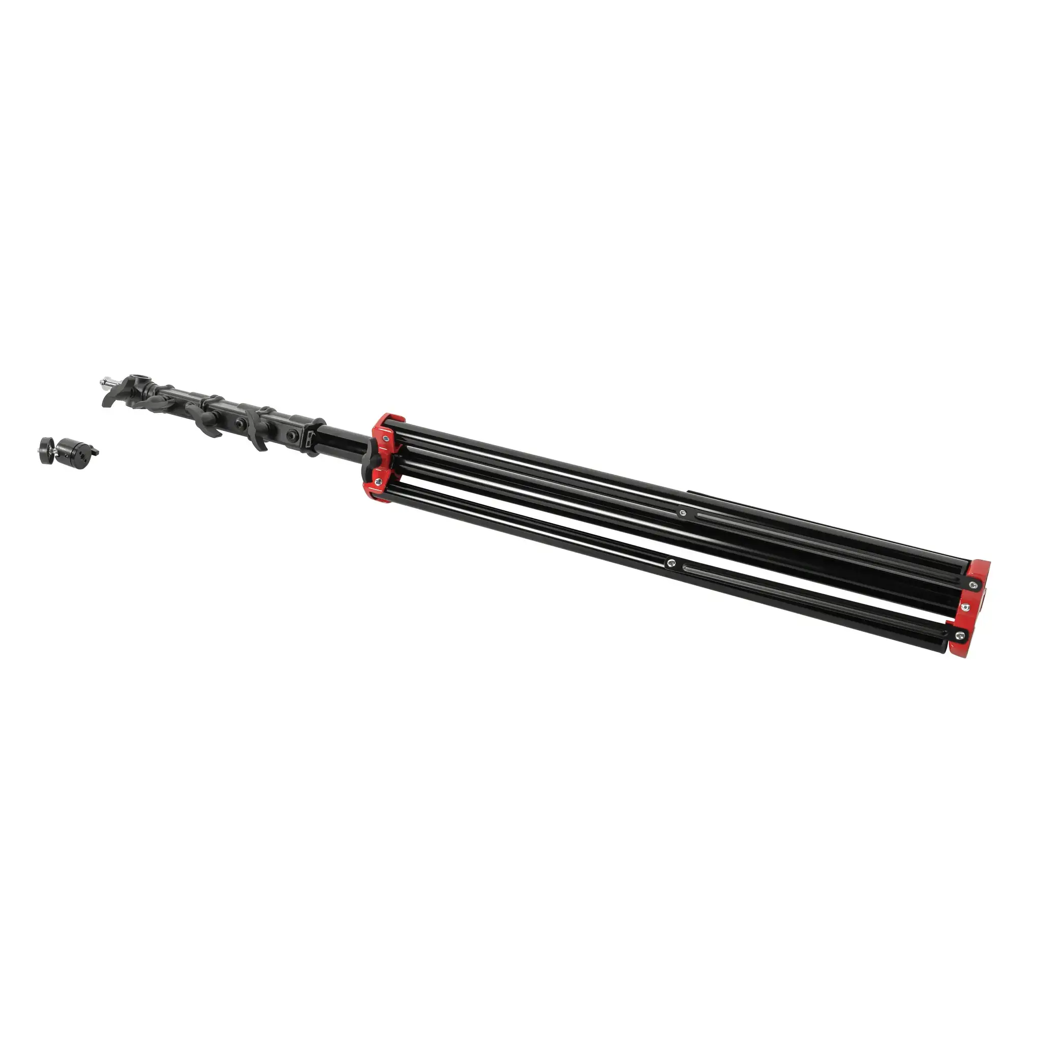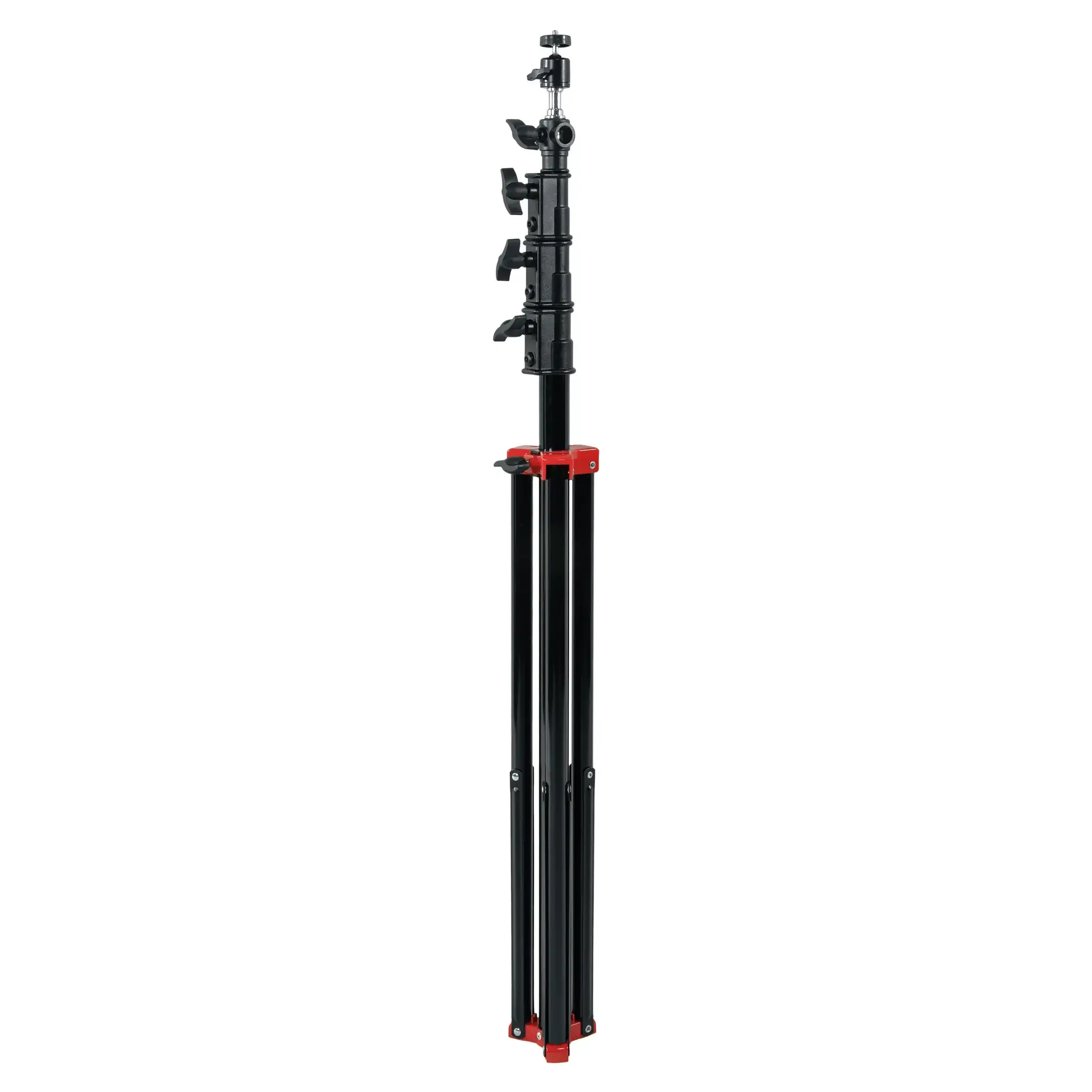 Основание стойки представляет собой складную треногу с винтовым фиксатором. Максимальный размах ножек достигает 106 см, обеспечивая надежную опору для крепления оборудования. Ножки стойки стабилизированы специальной алюминиевой растяжкой, повышающей общую устойчивость конструкции. При съемке в сложных условиях можно закрепить на основании стойки дополнительный груз, например, мешок Falcon Eyes SP-BG11, заполненный песком.