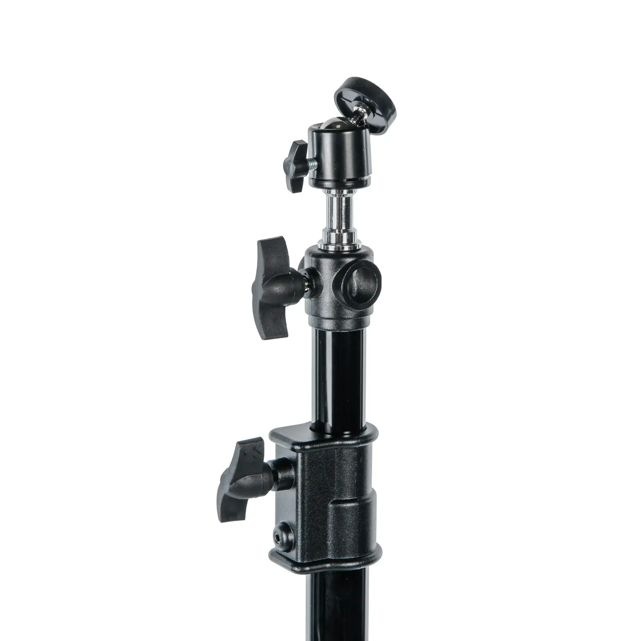 Фото- или видеокамеру можно установить на стойку с помощью универсального съемного адаптера диаметром 5/8 дюйма (16 мм) с резьбовым соединением 1/4 дюйма и 3/8 дюйма. Шпигот может устанавливаться горизонтально, что дополнительно расширяет возможности крепления устройств.