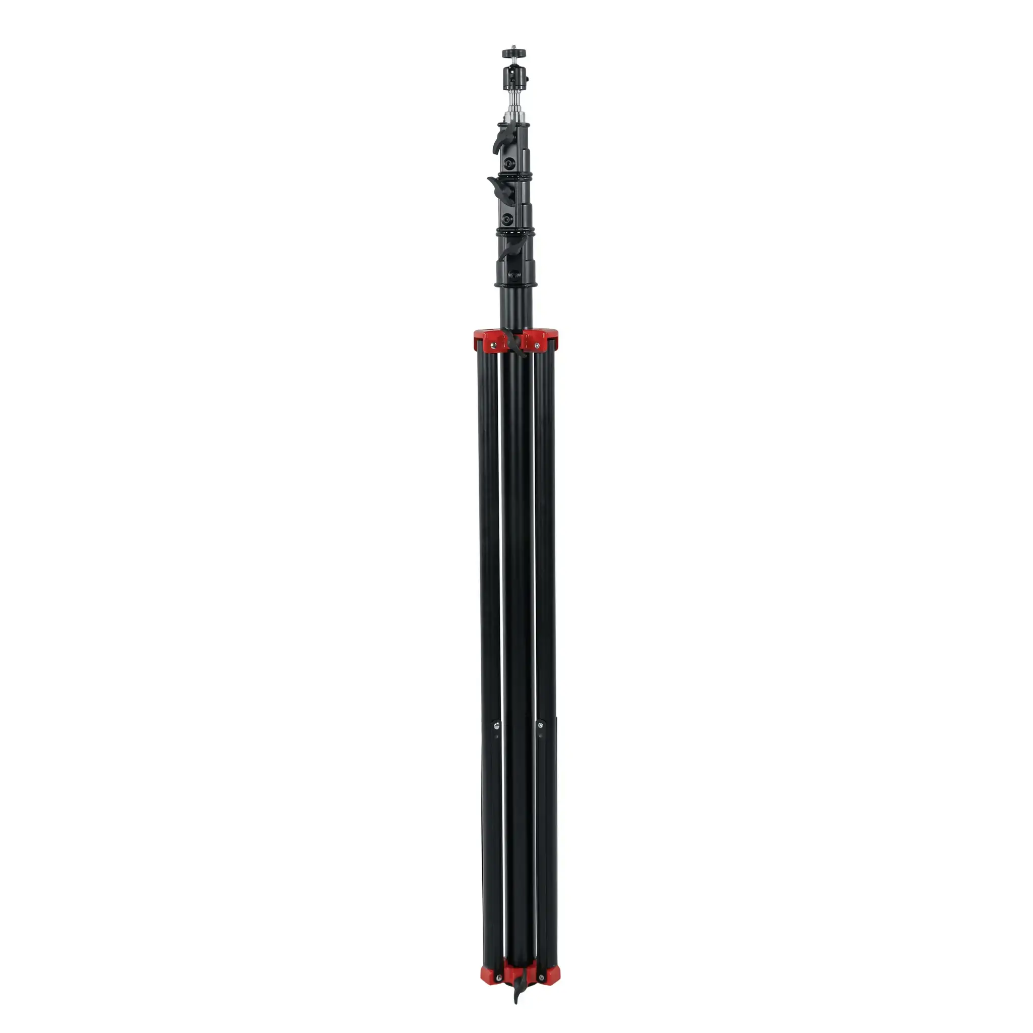 Высота стойки плавно изменяется в диапазоне от 135 до 390 сантиметров благодаря телескопическому выдвижению секций центральной колонны. Степень устойчивости и общая высота изделия дополнительно регулируется положением ног основания.