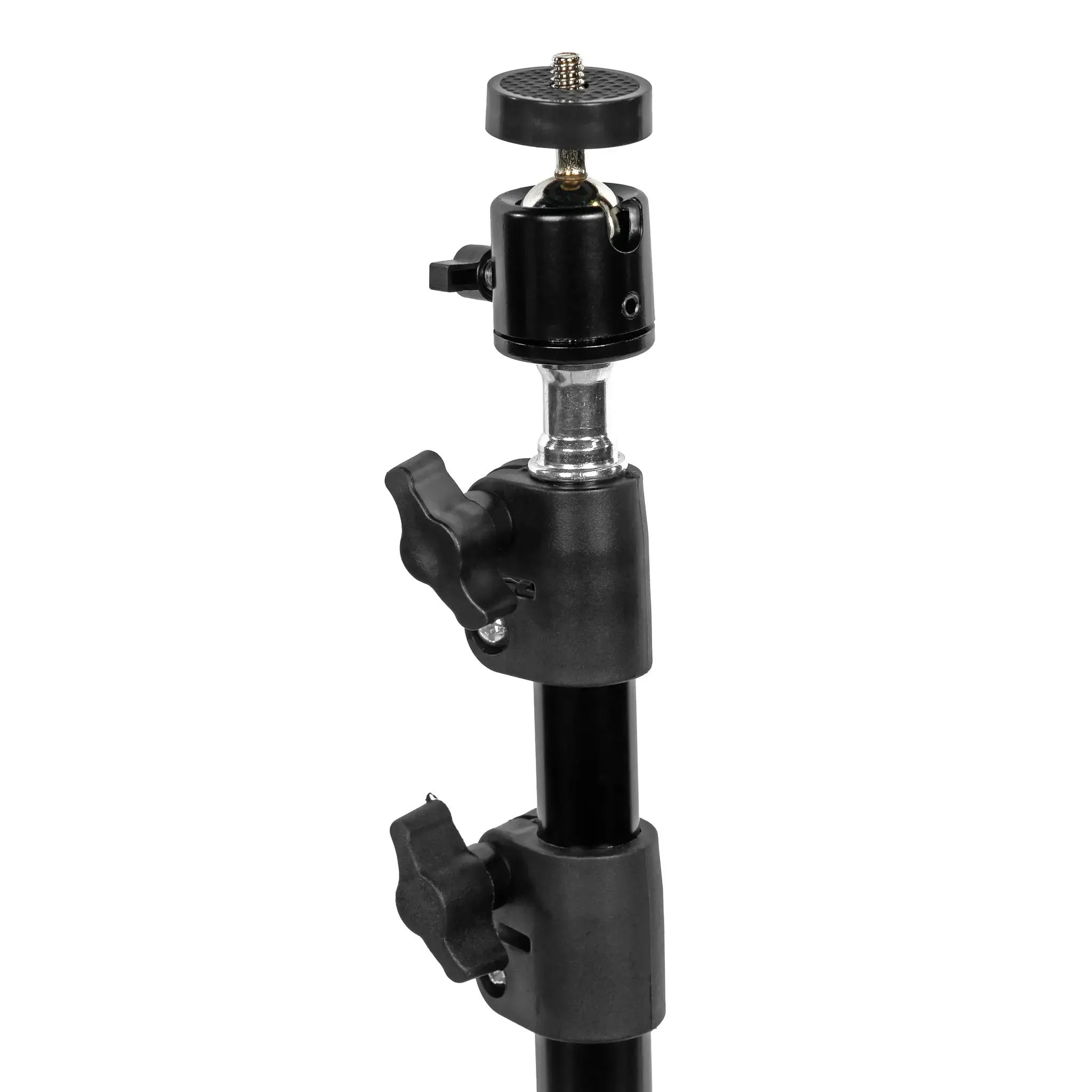 Три телескопические секции стойки диаметром 16, 19 и 22 мм изготавливаются из алюминия, соединяются и фиксируются винтовыми зажимами-хомутами. Ножки также изготовлены из алюминиевой трубы диаметром 16 мм. Благодаря такой конструкции стойка при максимальной высоте 200 см выдерживает вертикальную нагрузку до 2 кг.