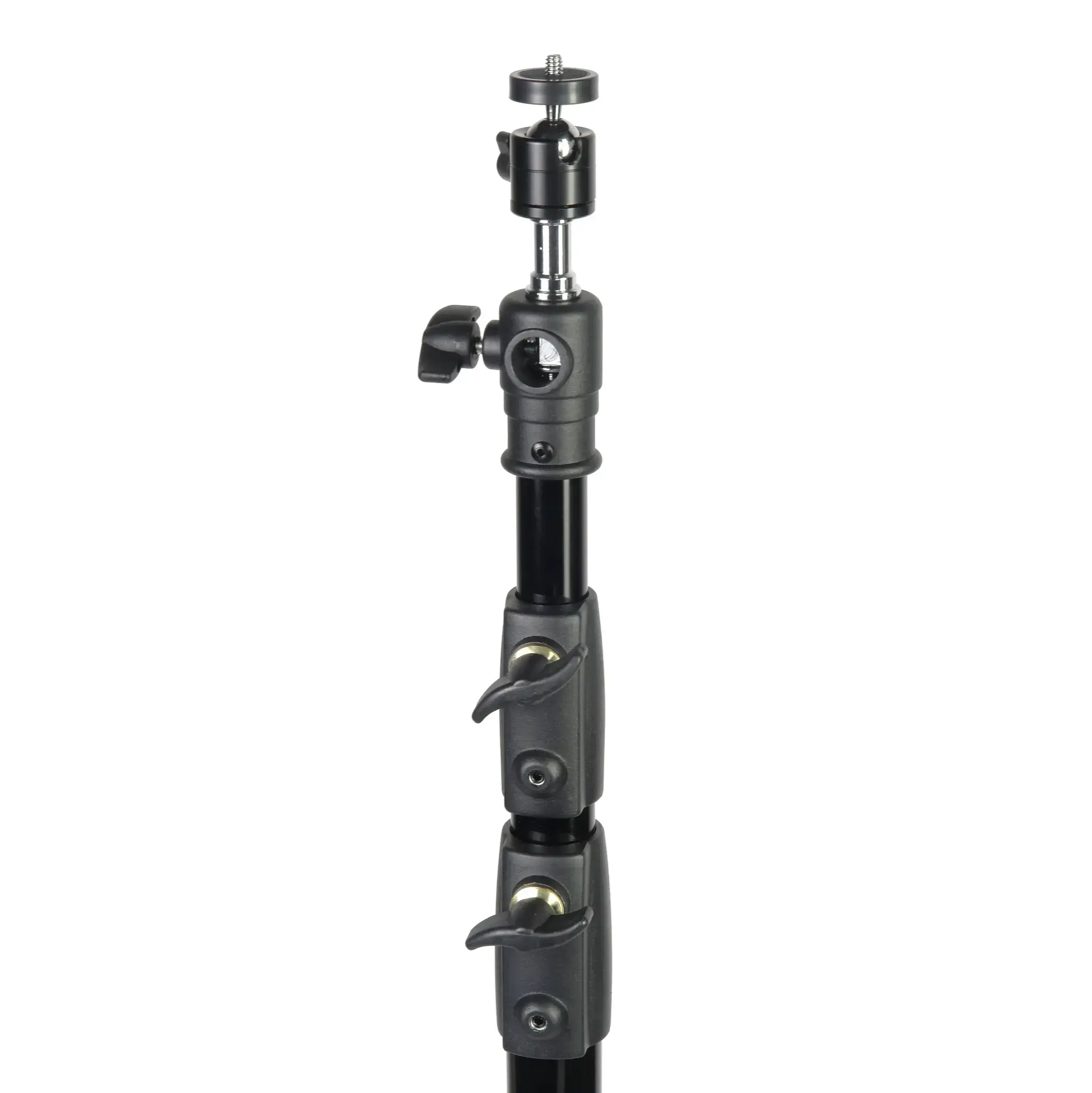 4 телескопические секции увеличенным диаметром 35, 30, 25 и 22 мм надежно фиксируются по высоте, благодаря стальным винтовым зажимам, которые вкручиваются в металлические вкладыши на зажимной муфте секции. Винтовые зажимы оснащены крупными ручками из прочного ABS-пластика.