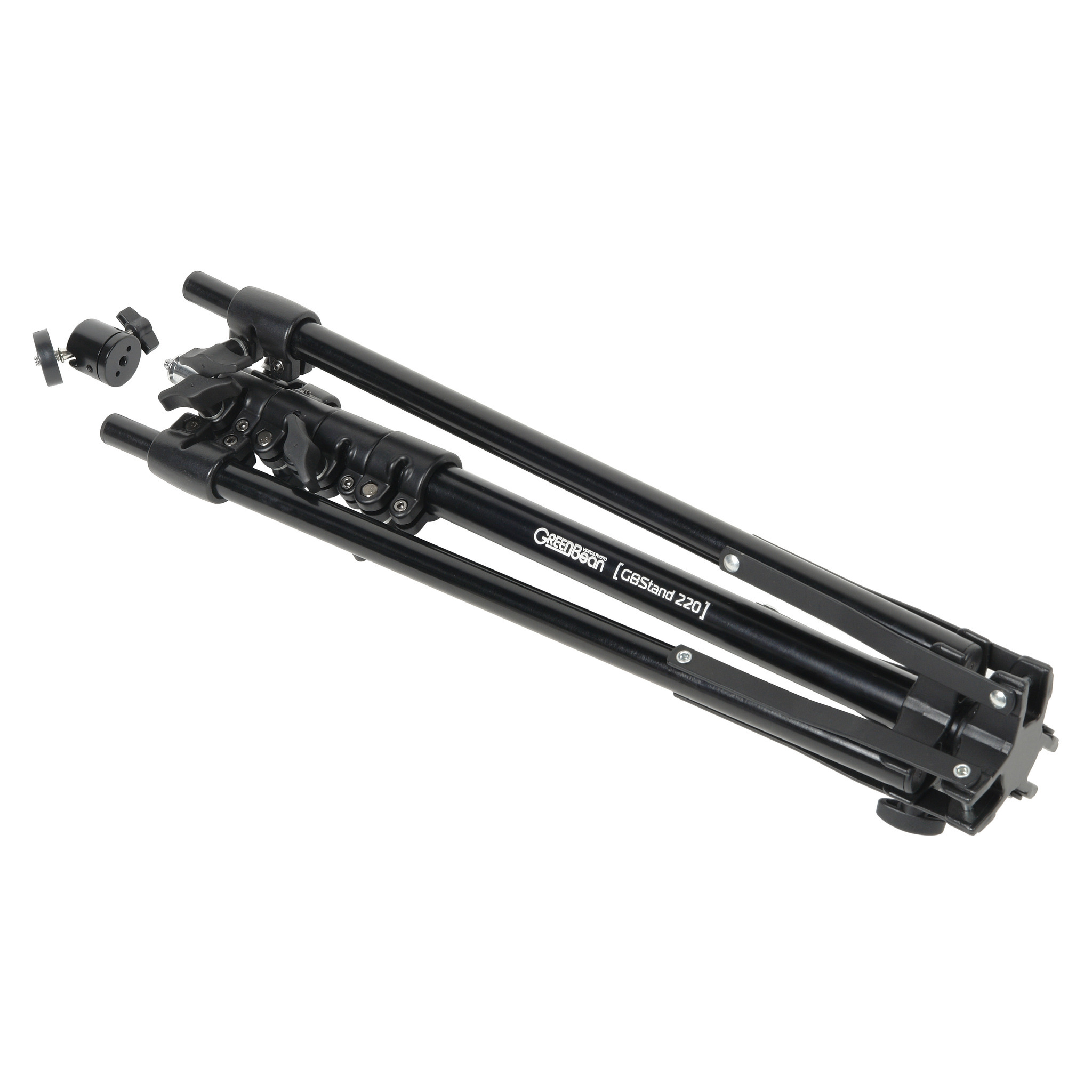 GreenBean GBStand 220 – легкая телескопическая стойка-тренога с реверсивными ногами и шаровой миниголовой, служит для установки цифровых фото- видеокамер, стандартное крепление шпигот 5/8" с винтом с резьбой 1/4". Высота 222 см, 5 секций, максимальная вертикальная (осевая) нагрузка до 2,5 кг. Телескопические ноги стойки-треноги обеспечат возможность установки на неровных поверхностях, а реверсивная конструкция ног позволит компактно сложить стойку, что удобно для выездных репортажных съемок, там где условия отличаются от студийных.
