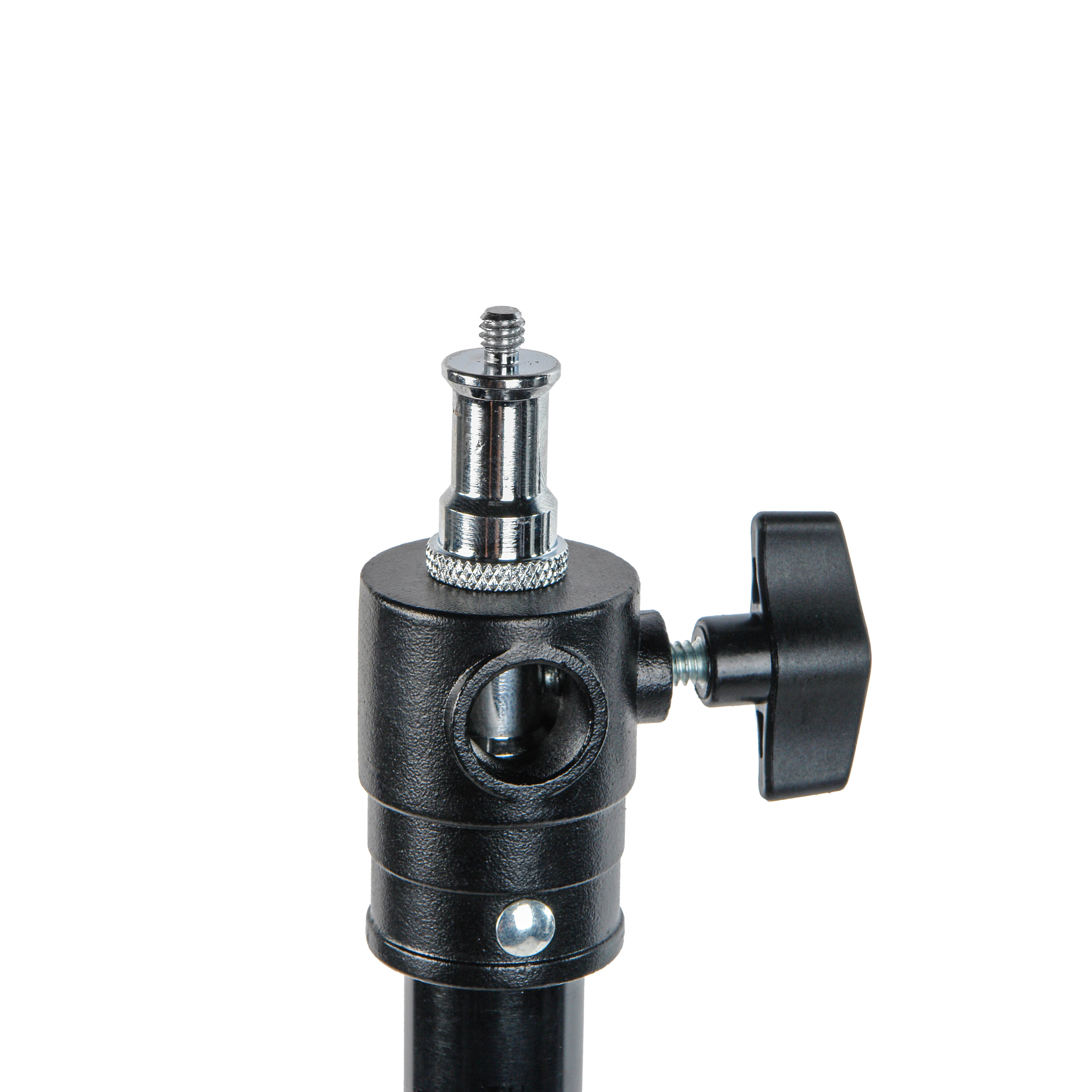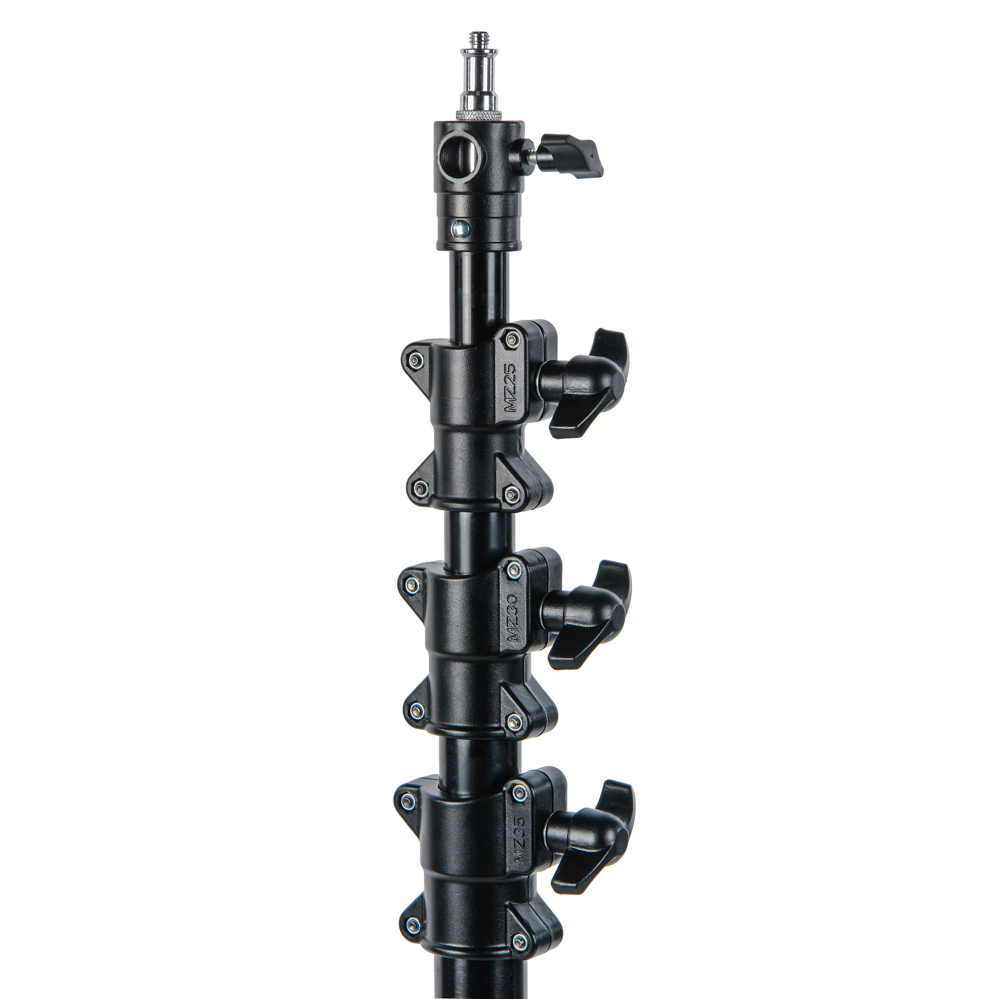 Стойка-тренога высотой 125-360 см имеет оптимальный вес 3,31 кг для установки камеры. Легкая алюминиевая стойка подходит для применения в профессиональной фото/видеостудии или на выездной съемке.