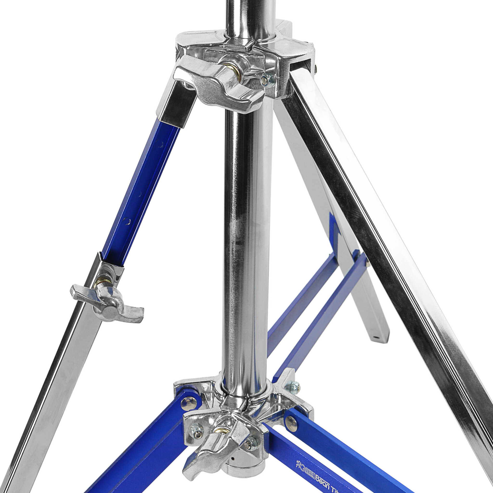 Высокая жесткость конструкции, максимальное использование высоты стойки и размаха треноги достигается за счет регулируемой нижней обоймы колонны.