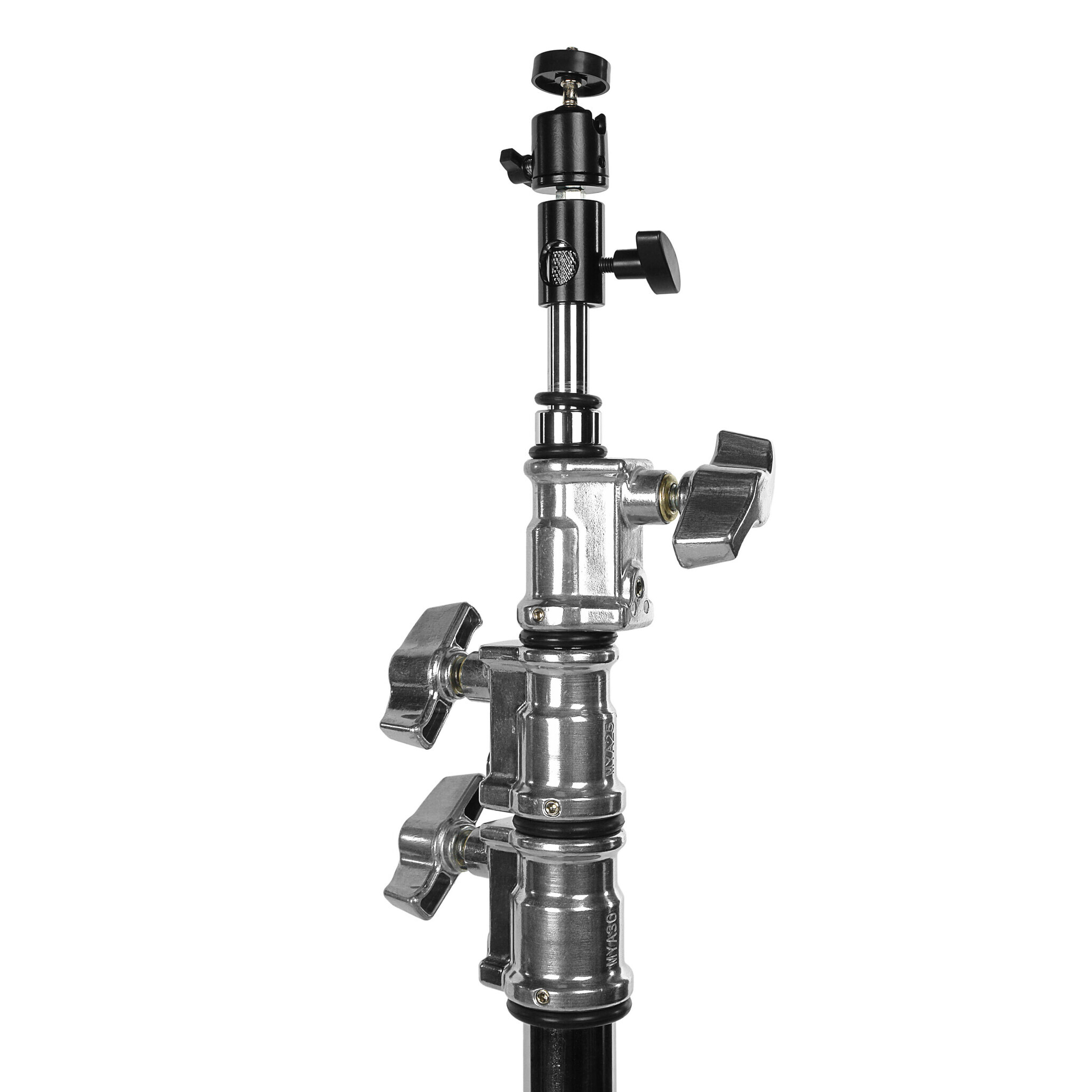 Стойка оснащена крепежным адаптером BABY (16 мм) из хромированной стали с нескользящей накаткой. На адаптер устанавливается шаровая головка с винтом 1/4” для панорамирования камерой на 360°.