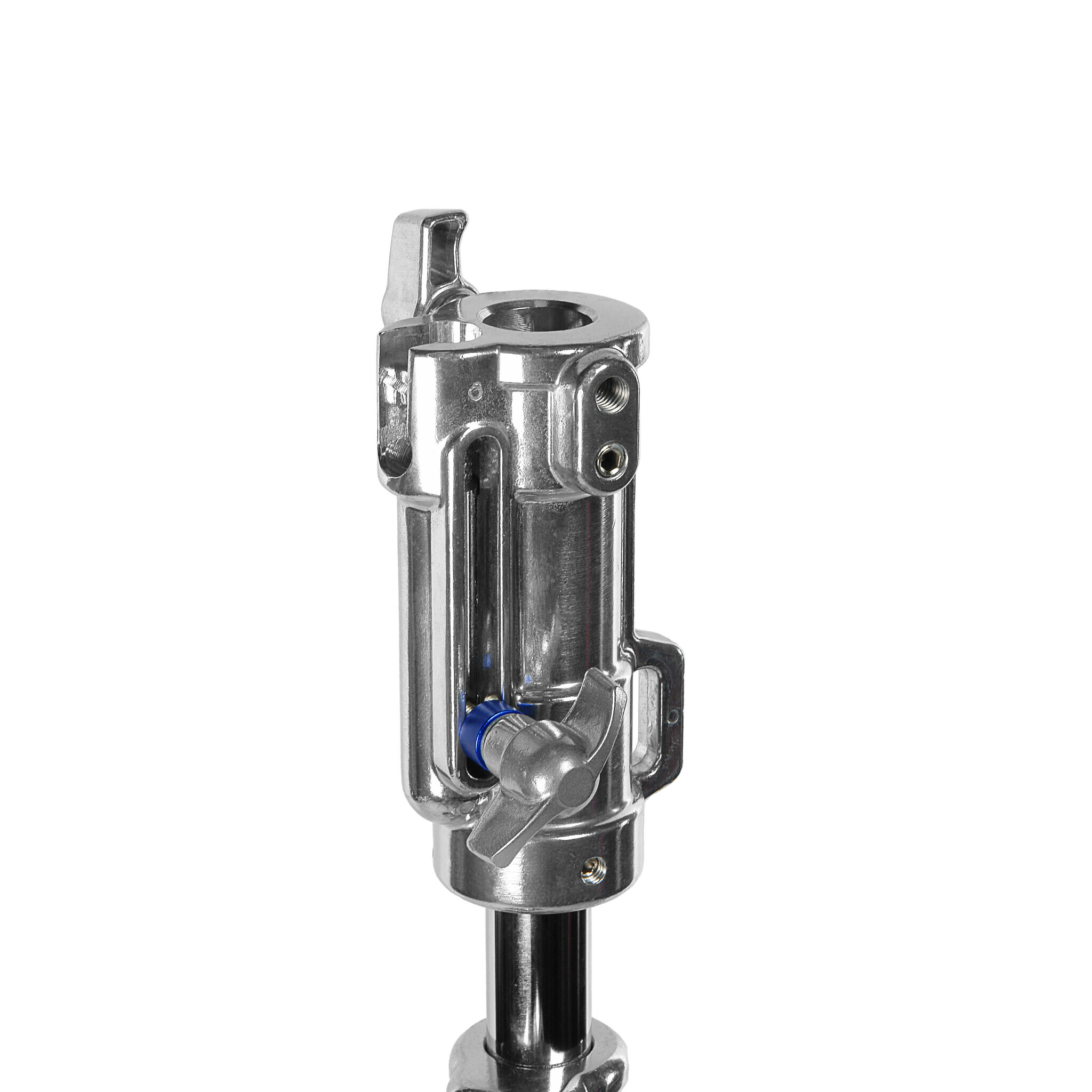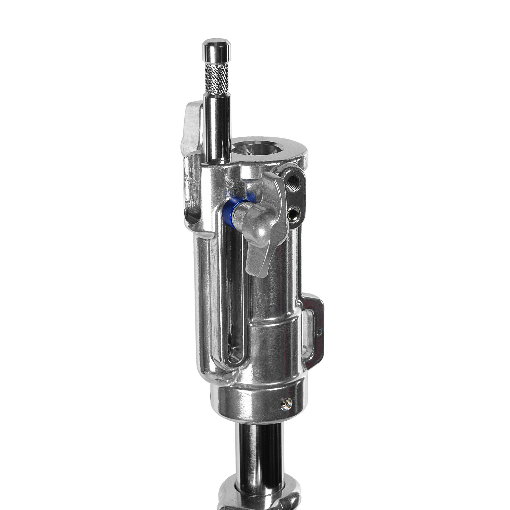 Высокая жесткость конструкции, максимальное использование высоты стойки и размаха треноги достигается за счет регулируемой нижней обоймы колонны.