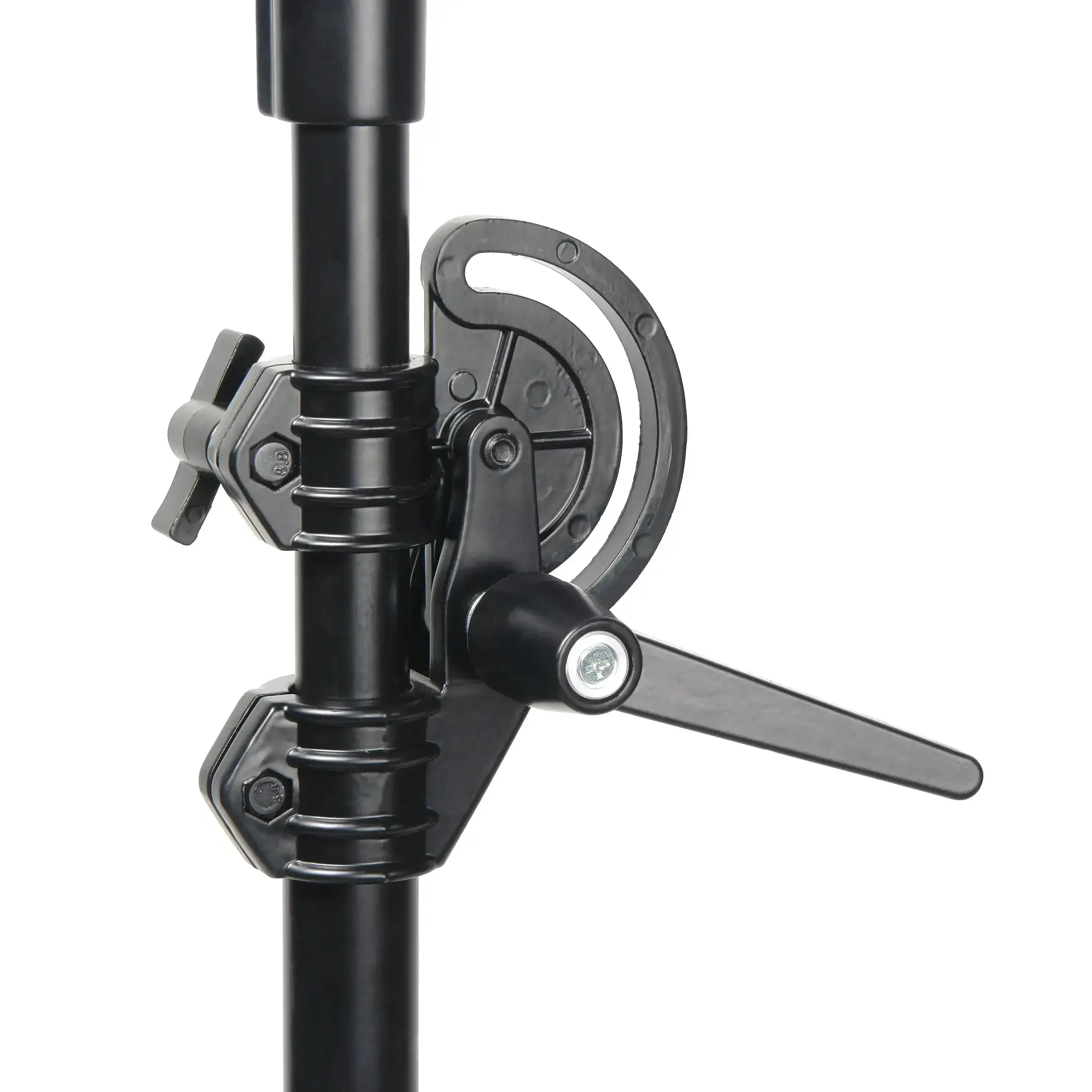 Регулируемый угол наклона перекладины-стрелы позволяет максимально удобно расположить осветитель над объектом и при этом вывести журавль из кадра. Угол наклона стрелы фиксируется надежным замком кронштейна с крупной ручкой с «храповиком».
