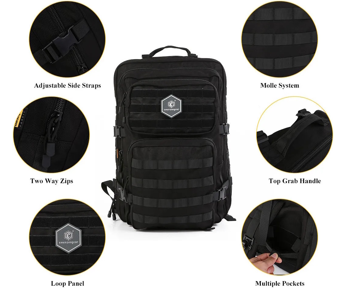 С рюкзаком EmersonGear EM9443 удобно работать в перчатках, поскольку все молнии крупные, а их бегунки оснащены пуллером.