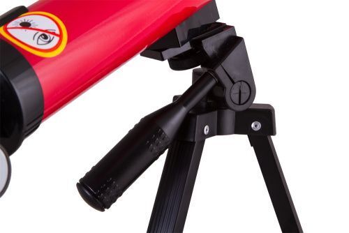 Азимутальная монтировка очень проста в управлении, ее быстро освоит даже ребенок. При помощи удобной ручки труба телескопа поворачивается вверх, вниз, вправо или влево. Телескоп комплектуется легкой и прочной треногой из алюминия. Высота треноги регулируется.