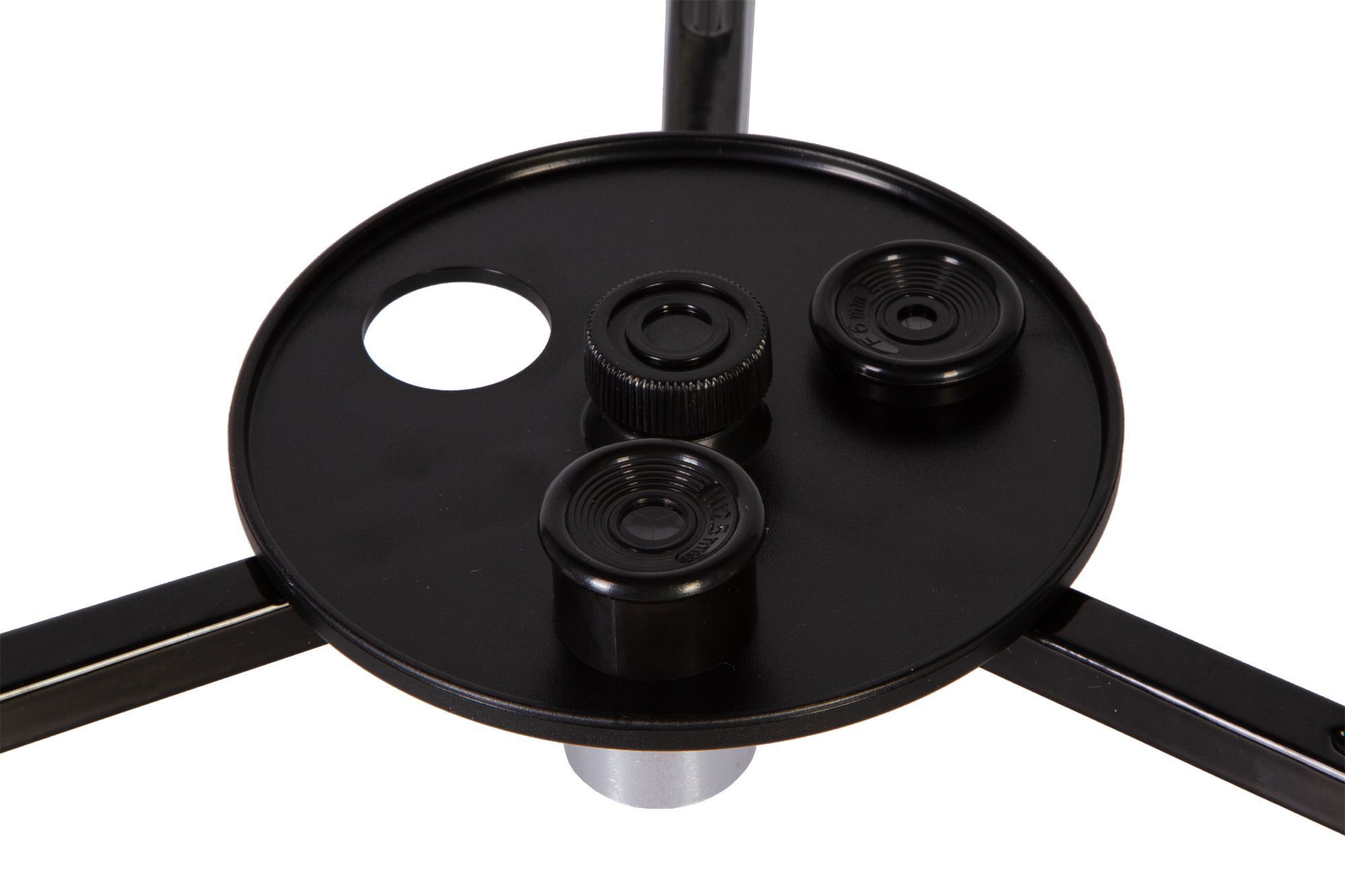 Телескоп установлен на базовую азимутальную монтировку. Для наведения используется специальная ручка управления, которая позволяет перемещать трубу вправо-влево и вверх-вниз. Тренога выполнена из алюминия, ее высоту можно регулировать, есть лоток для аксессуаров. В комплектацию включены все необходимые для наблюдений принадлежности.