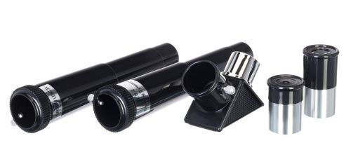 Телескоп поставляется вместе со всеми необходимыми оптическими аксессуарами. Здесь есть окуляры для астрономических наблюдений, оборачивающий окуляр для изучения наземных объектов, линза Барлоу и диагональное зеркало. Телескоп не требует дополнительных вложений и прекрасно подходит для подарка.