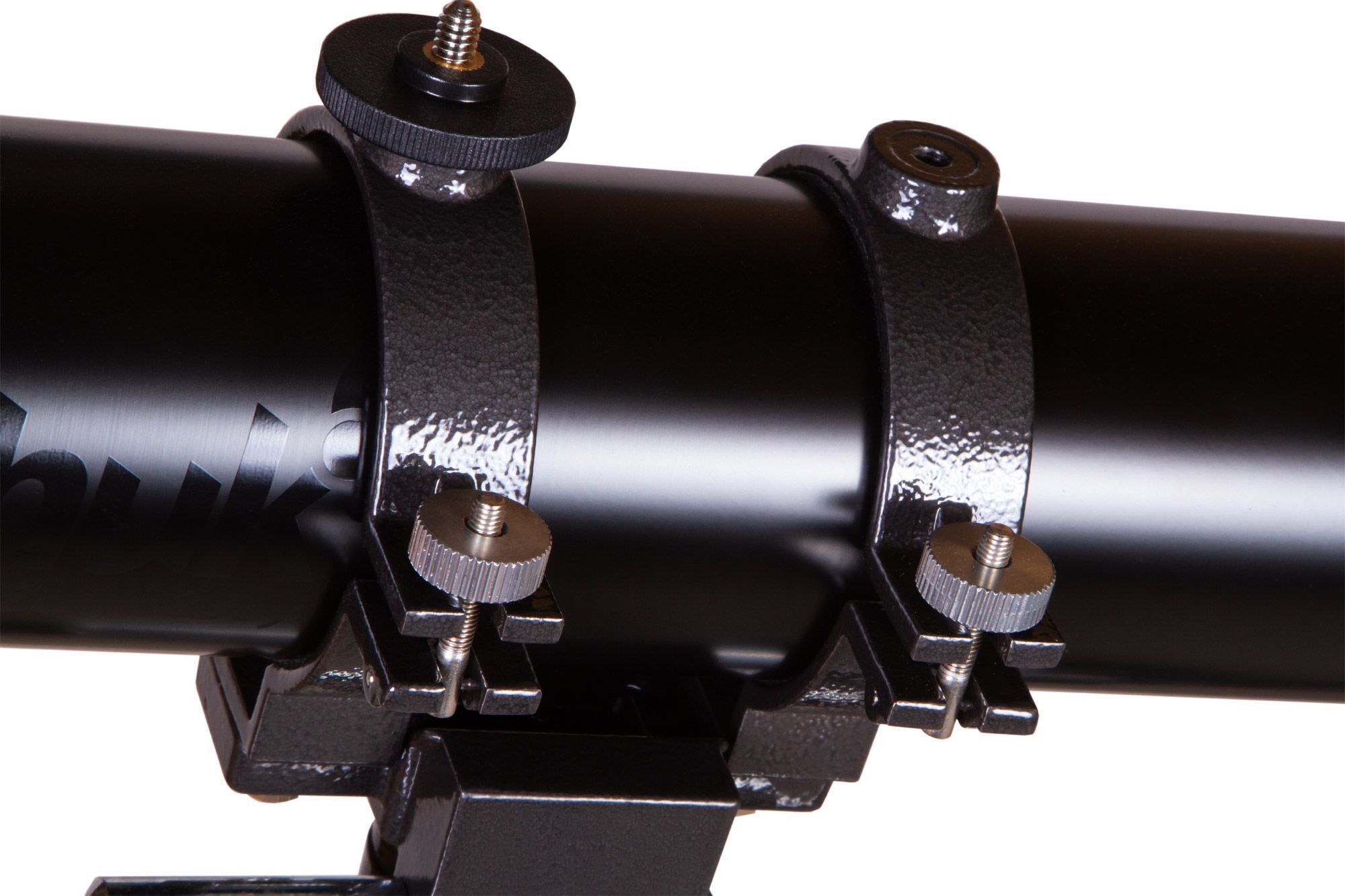 Оптическая труба телескопа установлена на экваториальную монтировку, которая хорошо подходит для изучения космоса. На освоение управления требуется время, но ведение астрономических объектов происходит просто и удобно. У монтировки плавный и мягкий ход, оптическая труба крепится надежно и прочно. Тренога сделана из алюминия, высоту ее ножек можно настраивать под рост наблюдателя. Есть лоток для аксессуаров.