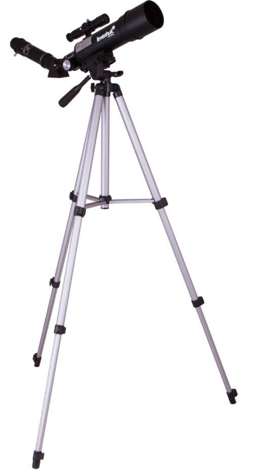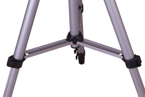 Телескоп Levenhuk Skyline Travel Sun 50 установлен на компактную и надежную азимутальную монтировку. Она очень проста в управлении, а со сборкой телескопа справится даже ребенок. Еще один плюс такой монтировки – малый вес. Для ведения телескопа есть удобная ручка. Монтировка крепится на алюминиевую треногу, ее высота регулируется от 40 до 125 см.