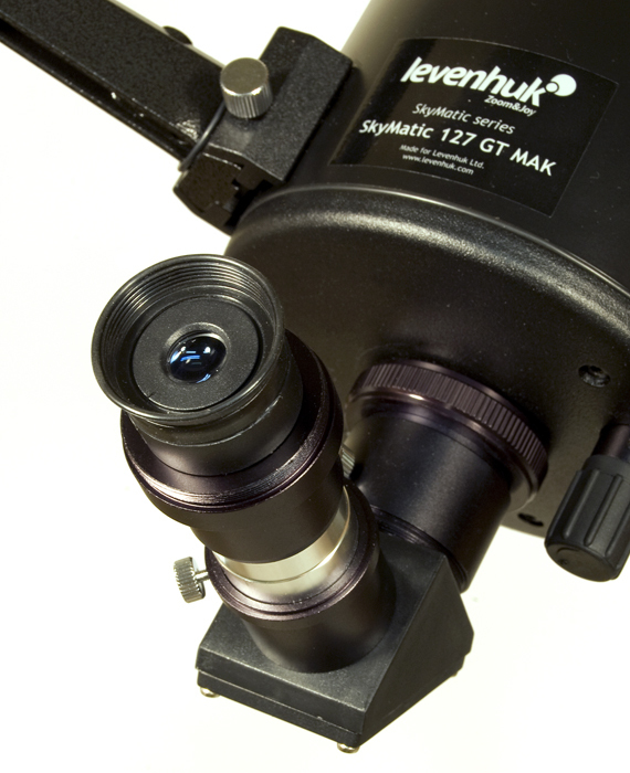 С телескопом поставляются два окуляра, дающие увеличения 150 и 60 крат. Линзы окуляров изготовлены из стекла и имеют многослойное просветление. Фокусировка осуществляется с помощью ручки с плавным и точным ходом. Посадочный диаметр под окуляры стандарта 1,25" (31,75 мм) позволяет использовать с телескопом Levenhuk 127 множество других окуляров, имеющихся на рынке. С их помощью увеличение телескопа может быть поднято до полезного предела в 250 крат.