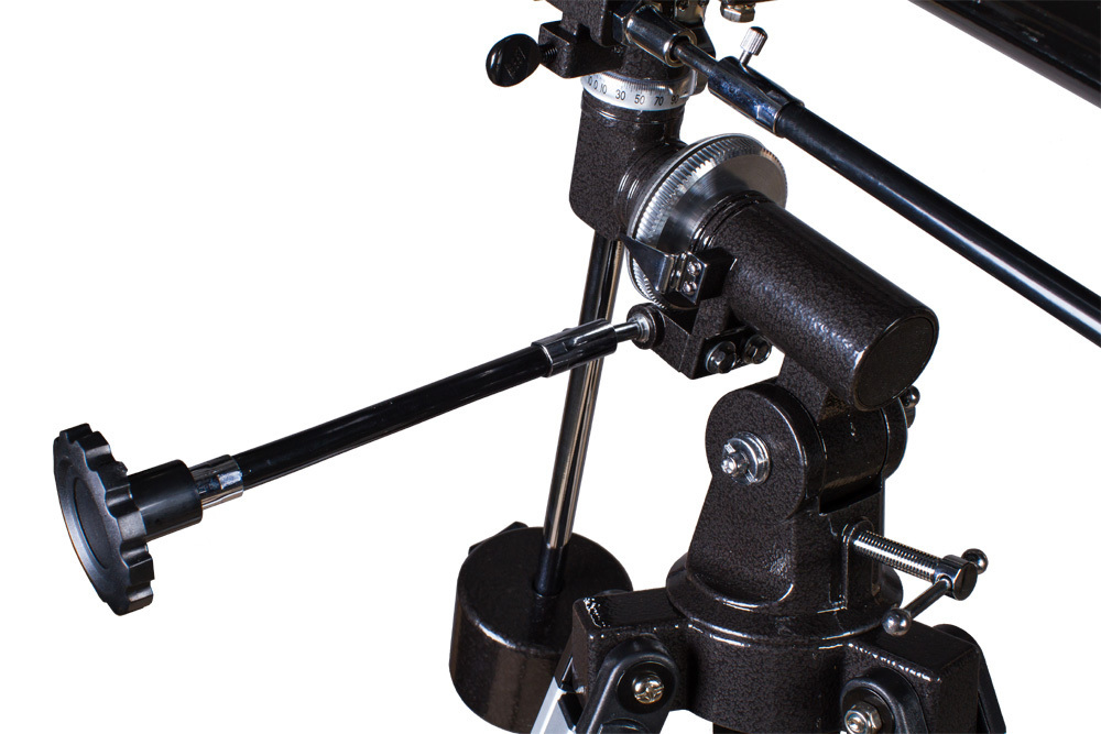 Экваториальная монтировка EQ1 позволяет перемещать оптическую трубу за выбранным объектом. Механизмы тонких движений по обеим осям обеспечивают максимально плавный ход. Для астрофотографии на ось прямого восхождения рекомендуется установить моторный привод (в комплект не входит). Алюминиевая тренога регулируется по высоте.