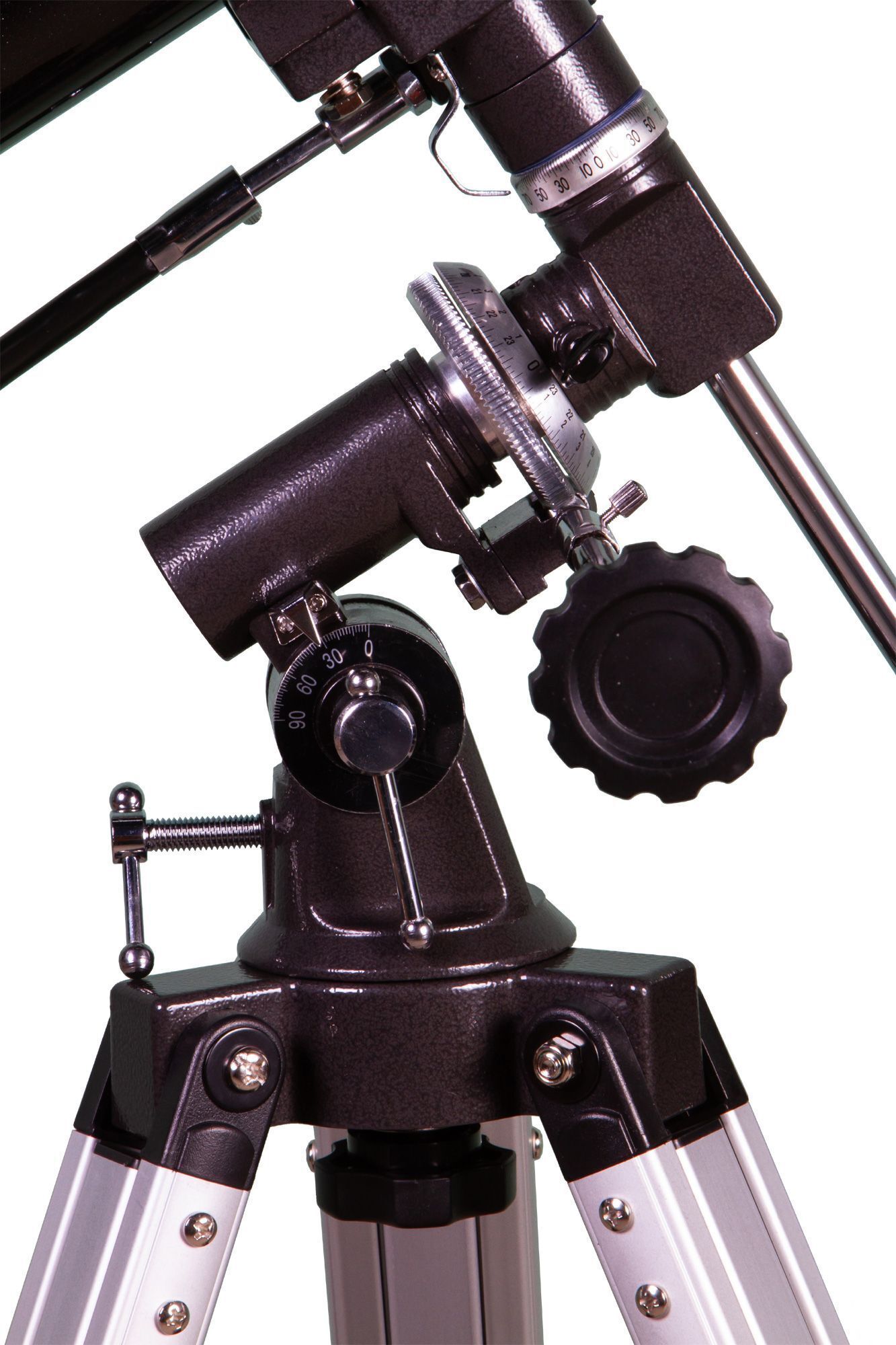 Оптическая труба установлена на экваториальную монтировку EQ1. Она управляется вручную при помощи двух ручек тонкой настройки. Тренога сделана из алюминия и имеет регулировку по высоте. Есть лоток для аксессуаров.