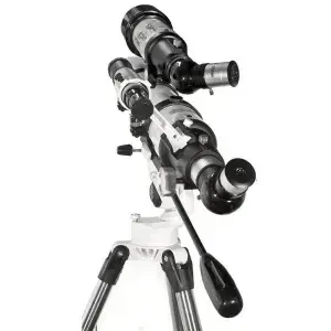 Закреплённый на трубе видоискатель увеличивает число видимых глазом звёзд и упрощает наведение телескопа по опорным точкам. Присоединив цифровую / зеркальную фотокамеру (Т-адаптер в комплекте), можно использовать телескоп для наземной и астрономической фотографии.