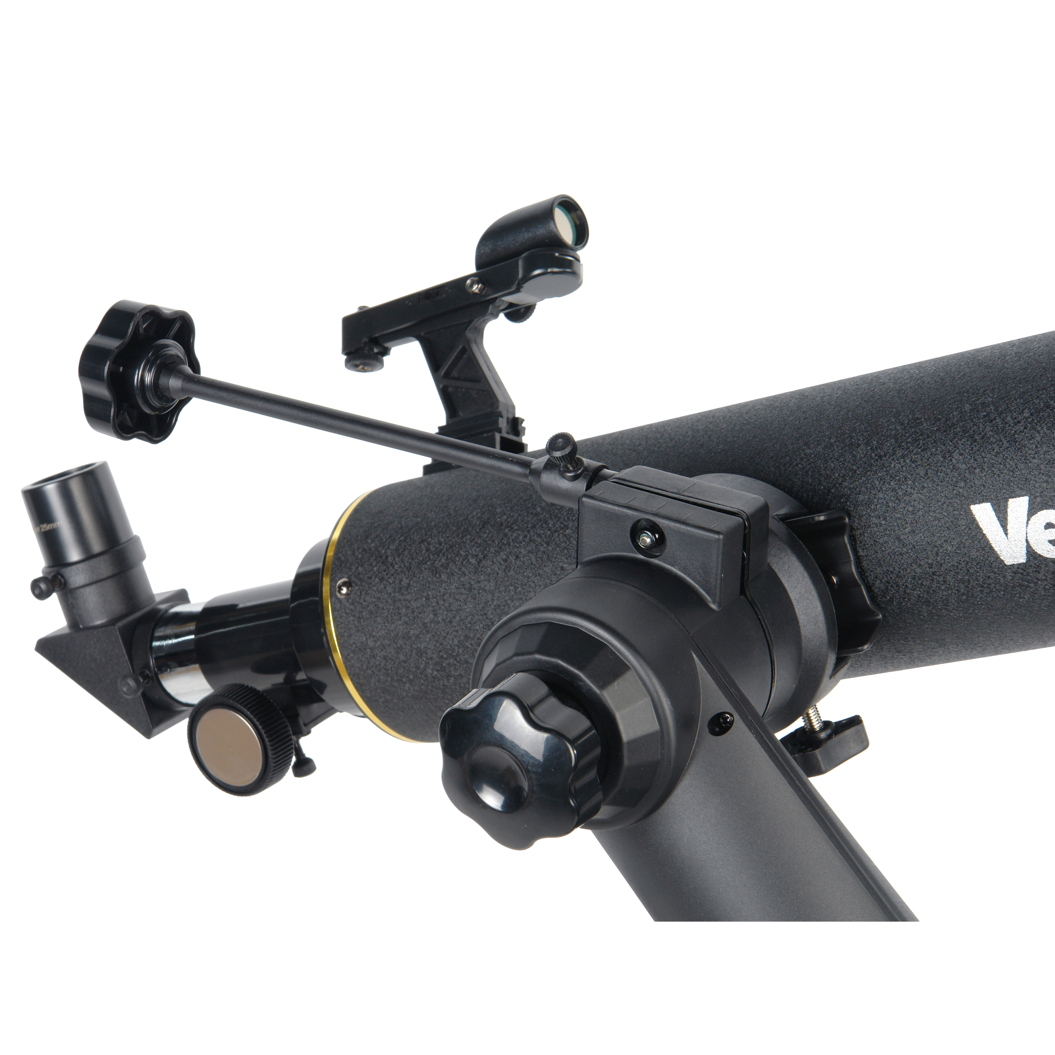Veber NewStar LT60090 AZIII - это рефракторный телескоп в металлическом корпусе с диаметром объектива 90 мм, фокусным расстоянием 600 мм, окулярами PL10 и К25, угловой призмой 90º и линзой Барлоу с увеличением 3х. Искатель Red Dot с лазерной подсветкой. Труба телескопа при помощи крепежной площадки присоединяется к азимутальной монтировке, установленной на штатив-треногу.