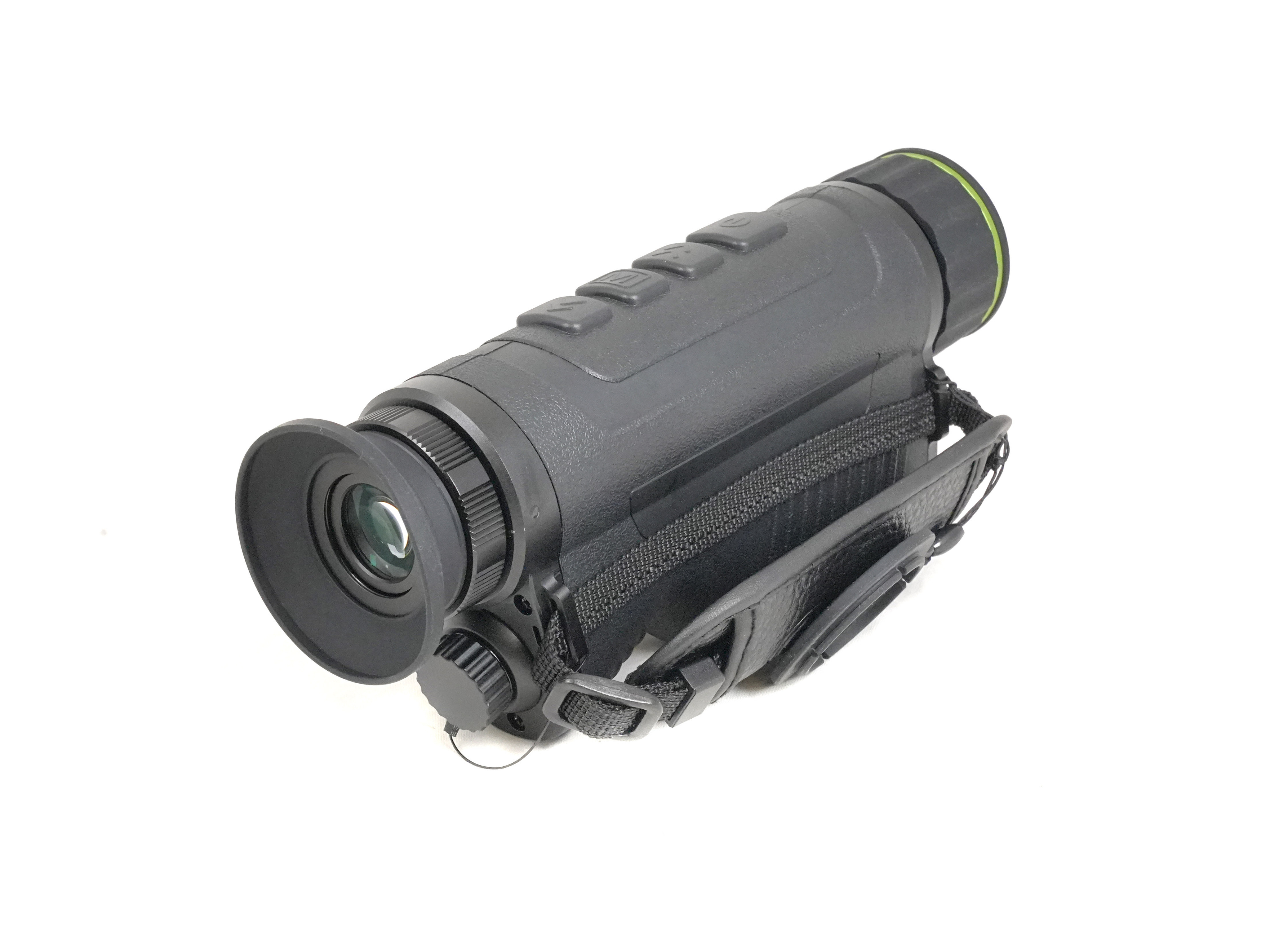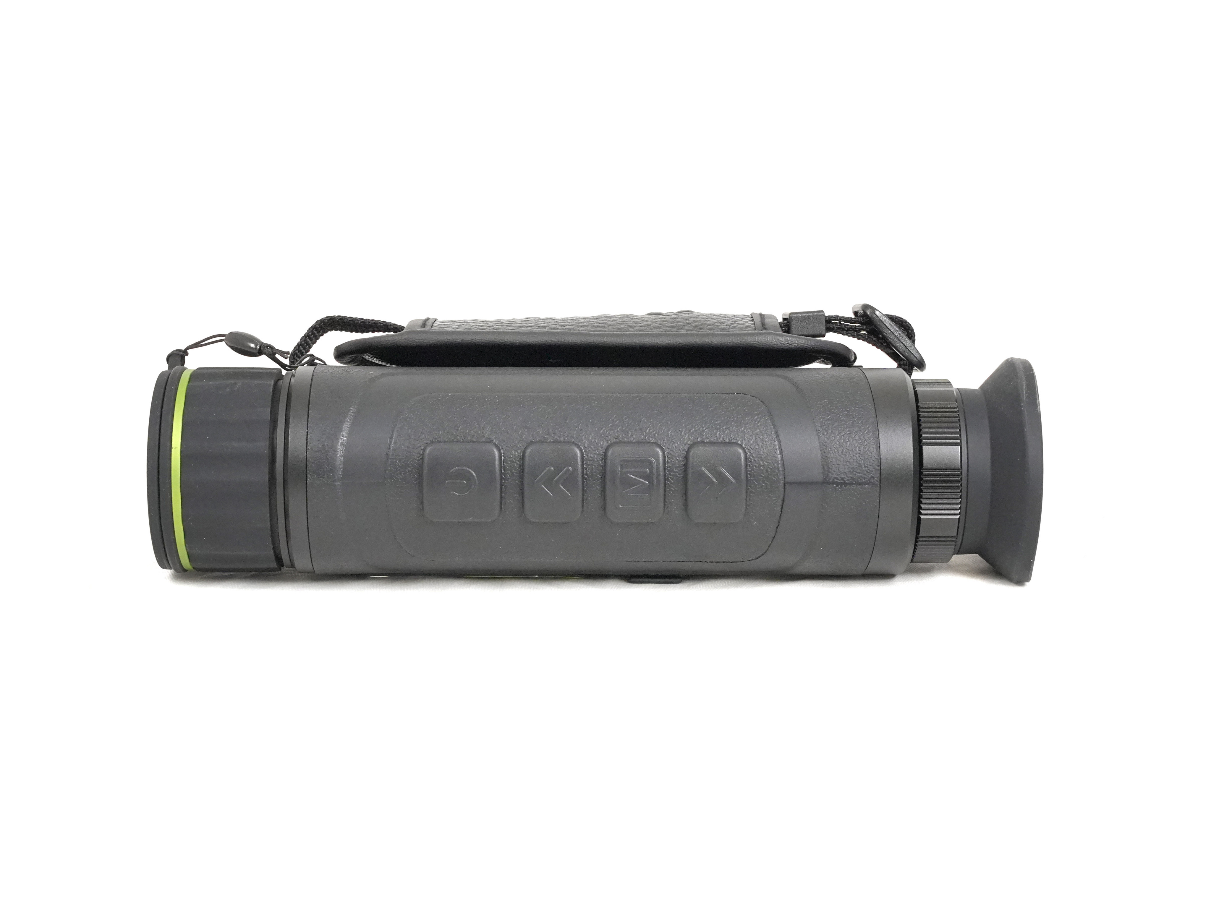 Этот тепловизор оснащен германиевым объективом с фокусным расстоянием 35 мм, относительным отверстием 1.0 и оптическим увеличением 2,2х. Для масштабирования изображения предусмотрен цифровой зум х1/х2/х4/х8. Благодаря широкому углу обзора FOV (Field of view) 12,6°х10,1°, п что в линейном выражении соответствует видимой области пространства размером 21,9 х 17,5 метров на удалении в 100 м.
