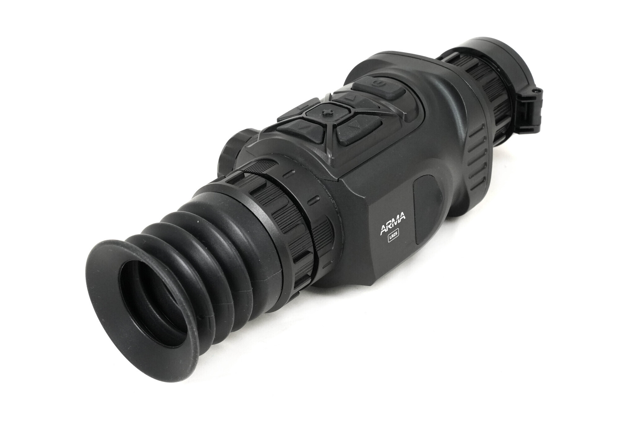 В основе тепловизионного модуля Arkon Arma LR25 лежит ИК-сенсор Uncooled VOx с разрешением 384×288 пикселей и технологией плотности размещения детекторов 12 мкм. Порог тепловой чувствительности NETD ≤30 мК позволяет регистрировать даже незначительные температурные изменения на поверхности наблюдаемых объектов, создавая детализированные термографические изображения. Модуль работает в длинноволновом инфракрасном спектре LWIR (7-14 мкм), что позволяет ему уверенно распознавать цели в условиях полной темноты и сквозь атмосферные помехи. Частота обновления кадров составляет 50 Гц.