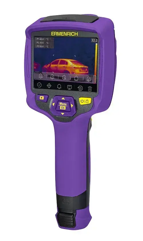 Ermenrich Seek TV80 – профессиональный портативный тепловизор, разработанный для решения широкого круга задач в строительстве и обслуживании инженерных систем. Устройство позволяет оперативно выявлять тепловые аномалии в конструкциях зданий, оценивать эффективность теплоизоляции стен, оконных и дверных проемов, фасадов, а также диагностировать системы отопления, вентиляции и кондиционирования. Прибор оснащен модулем Wi-Fi и может передавать данные на смартфон/планшет в реальном времени.
