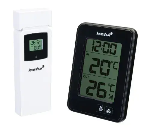 Levenhuk Wezzer BASE L50 – прибор, который сочетает в себе функции термометра и часов. Измерения температуры проводятся в двух местах одновременно – благодаря наличию в комплекте беспроводного внешнего датчика. Это позволяет узнавать температуру и дома, и за окном, получая наиболее точные климатические данные без обращения к внешним метеослужбам. Также в памяти прибора сохраняются минимальные и максимальные показания. С таким гаджетом вы всегда будете в курсе приближающегося похолодания.