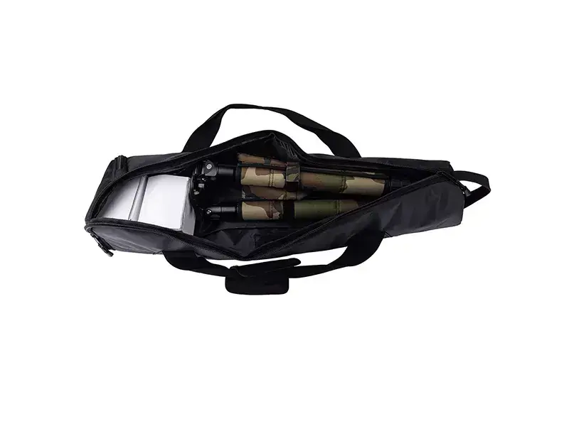 Комплектная сумка практичного черного цвета, выполненная из плотного и влагостойкого полиэстера 500D, упрощает хранение и транспортировку штатива.