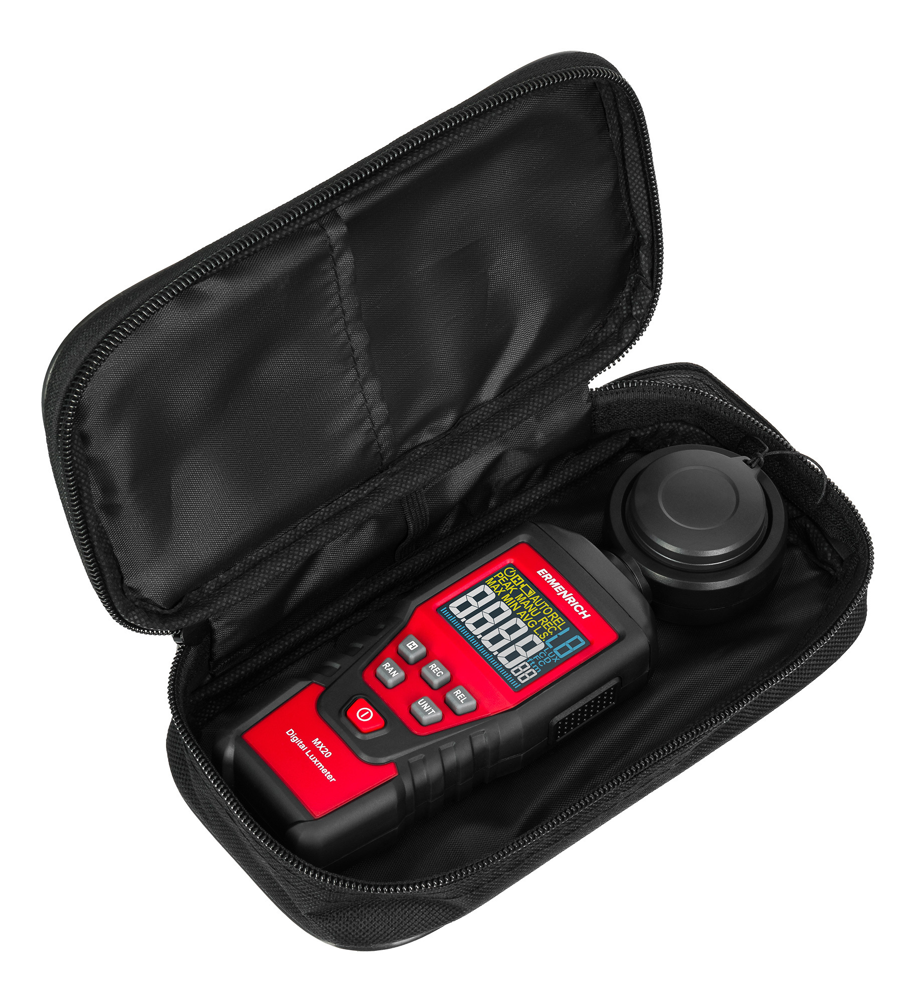 Цифровой люксметр Ermenrich Seek MX20 – прибор для быстрого и точного измерения уровня освещения. Он оснащен блоком со световым датчиком, цветным экраном с графической шкалой и простым кнопочным управлением.