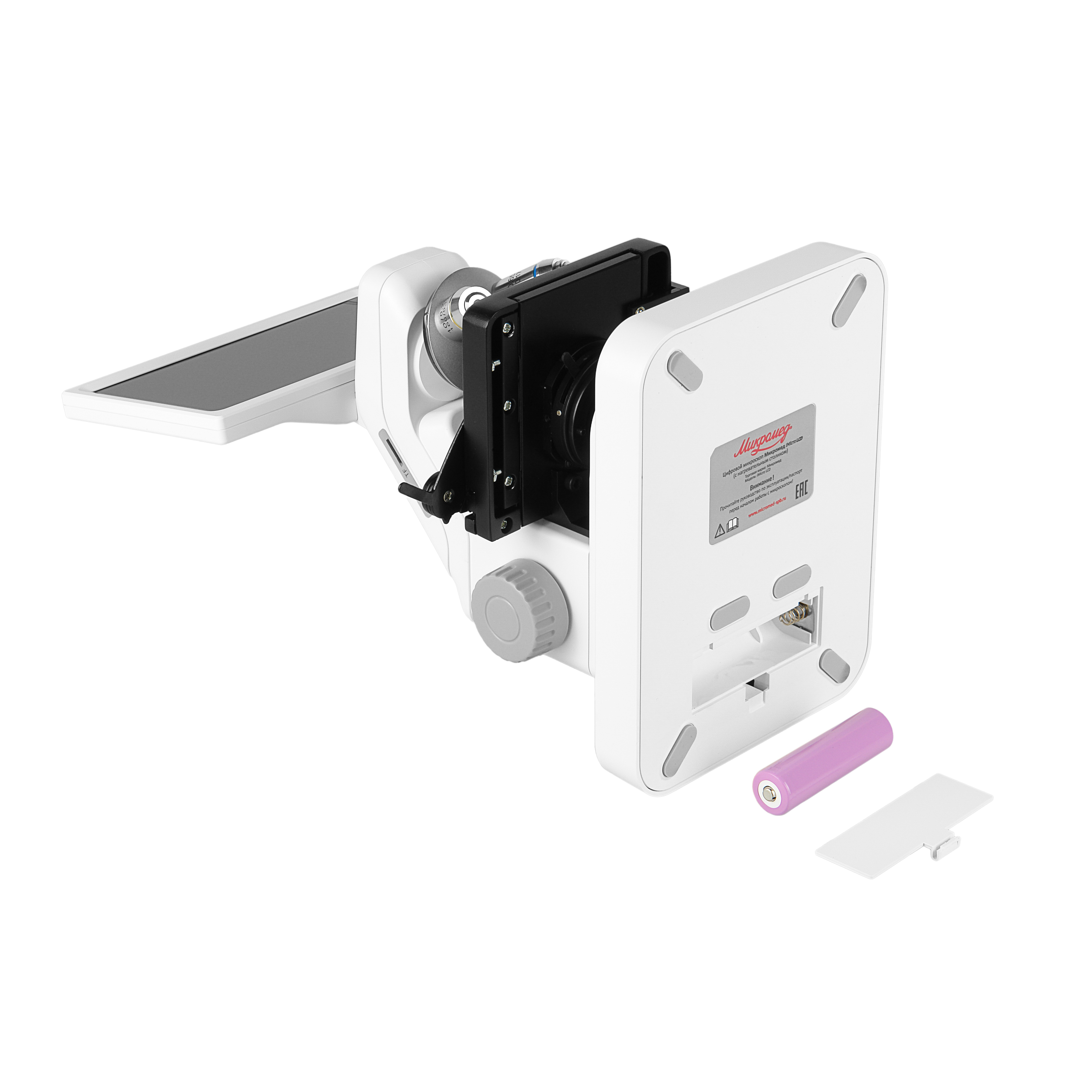 Встроенная 3Мр камеры и IPS монитора 7” позволяют в режиме реального времени и без чрезмерного напряжения глаз наблюдать изображение на мониторе микроскопа без подключения к ПК. Жидкокристаллическая матрица c технологией IPS позволяет наблюдать отчетливое изображение с углами обзора до 170⁰ без затемнения, это позволяет проводить с комфортом групповые занятия.