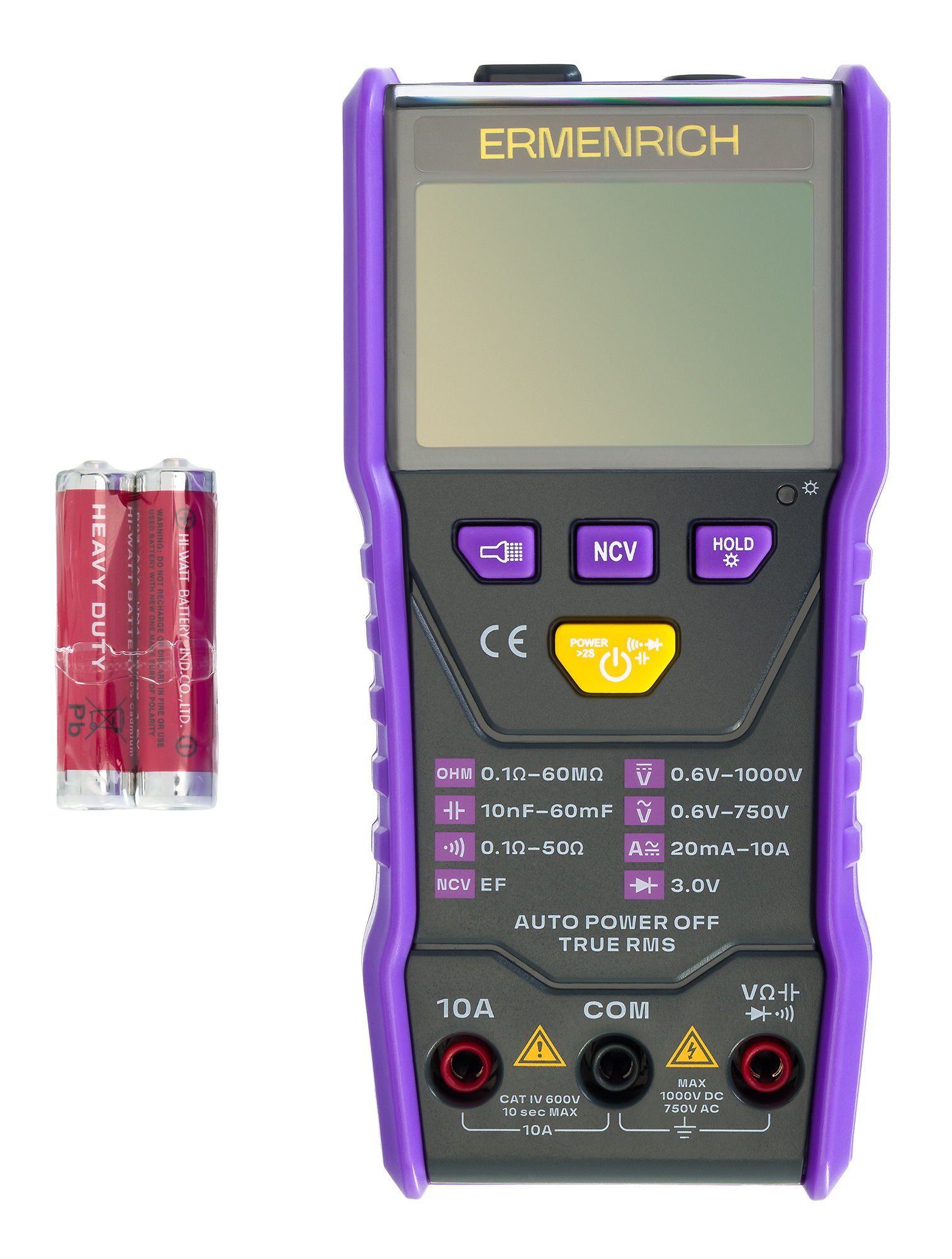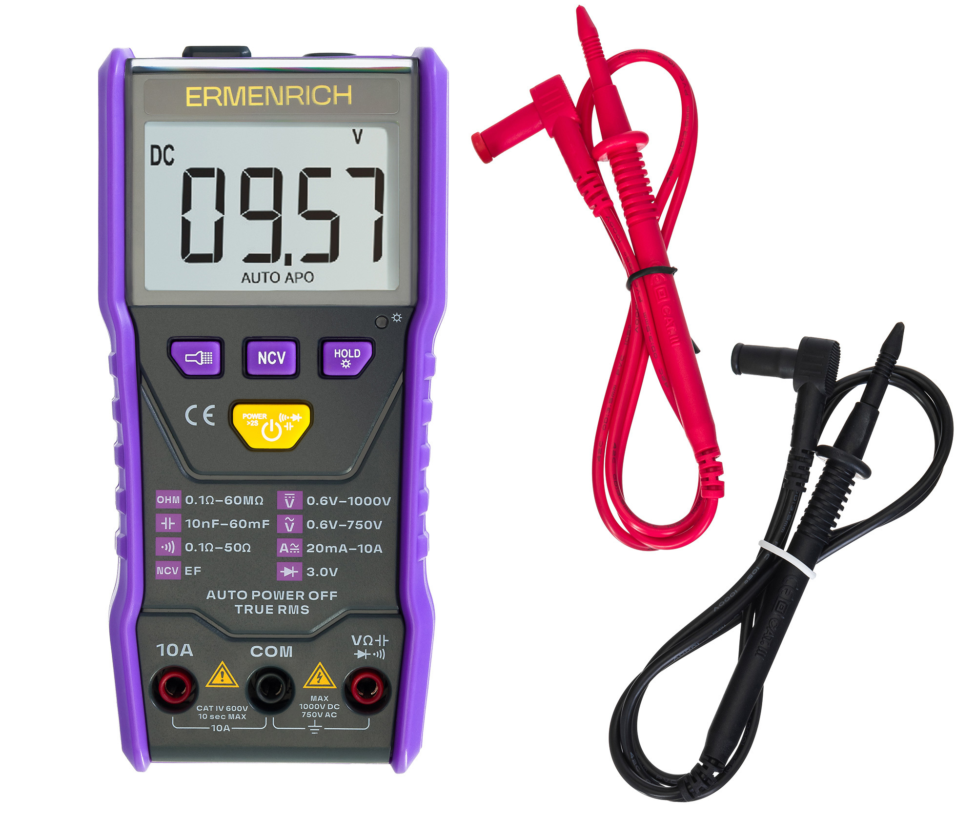 Компактный измеритель постоянного и переменного напряжения и тока, сопротивления и электрической емкости. Для более точного результата расчет выполняется по истинному среднеквадратичному значению (True RMS). Имеется отдельная кнопка (Hold) для удержания результата измерения. Также с помощью мультиметра можно обнаружить обрыв кабеля и короткое замыкание, проверить рабочее состояние диодов.