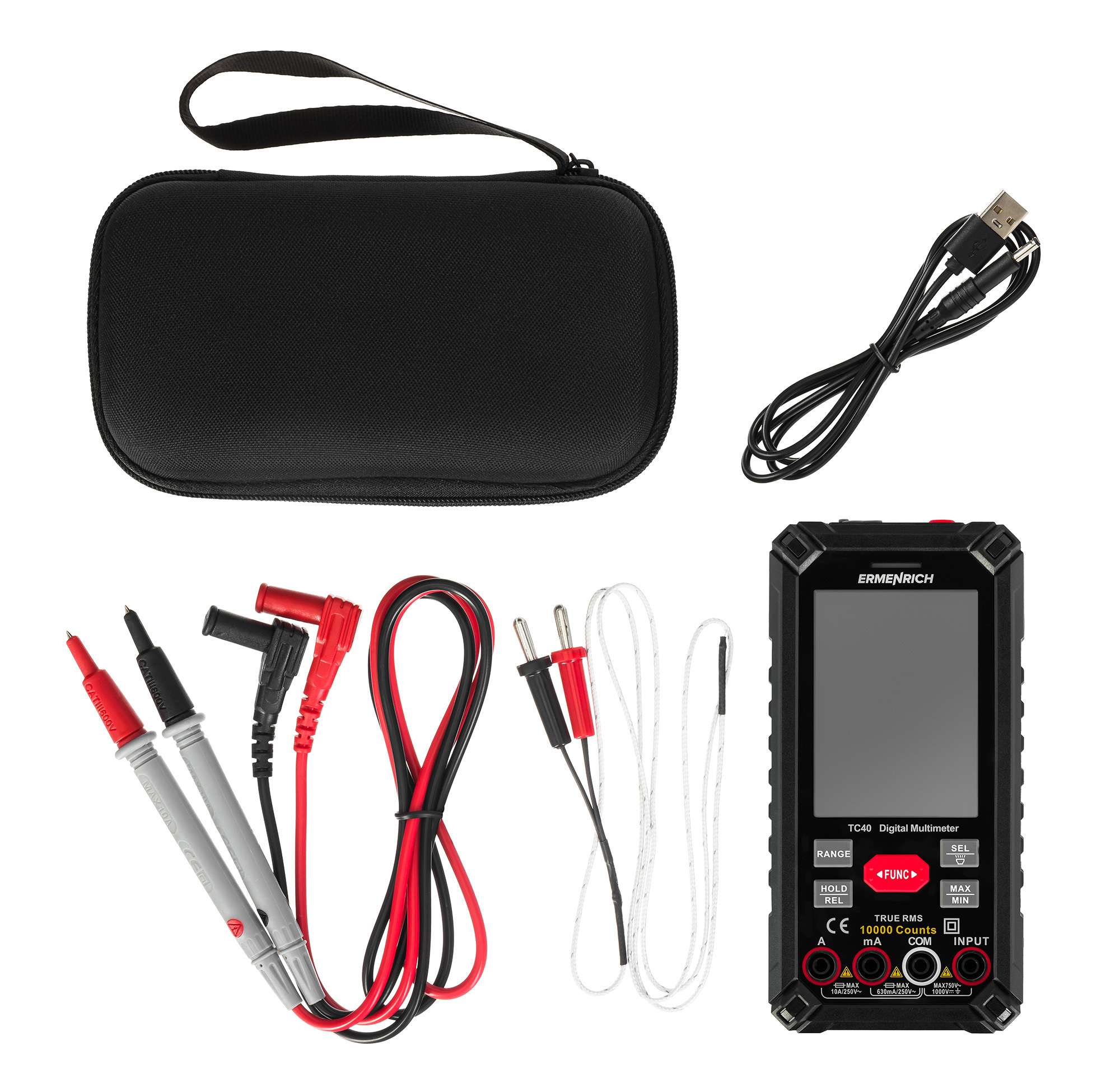 Цифровой мультиметр Ermenrich Zing TC40 предназначен для измерения электрических характеристик и диагностики кабельных сетей. Используется для определения силы тока, сопротивления, частоты, емкости, рабочего цикла и температуры. Как тестер может применяться для прозвонки кабелей, определения неисправностей диодов, определения фазы. Функция NCV дает возможность бесконтактно выявлять скрытую проводку в полу или стенах.