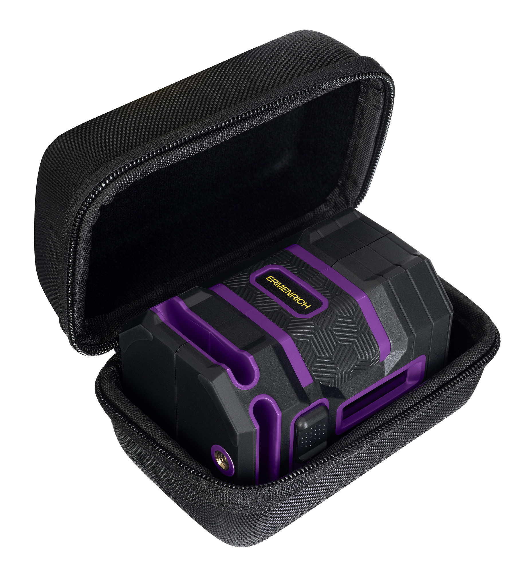 Ermenrich PLUS LN15 – универсальная модель для создания разметки как для несложного декоративного ремонта, так и для ответственных работ вроде заливки пола. Этот нивелир продуцирует 5 лучей (один вертикальный и четыре по горизонтали). Цвет лазера – зеленый, что соответствует требованию максимальной контрастности линий на любых плоскостях в любых условиях наблюдений.