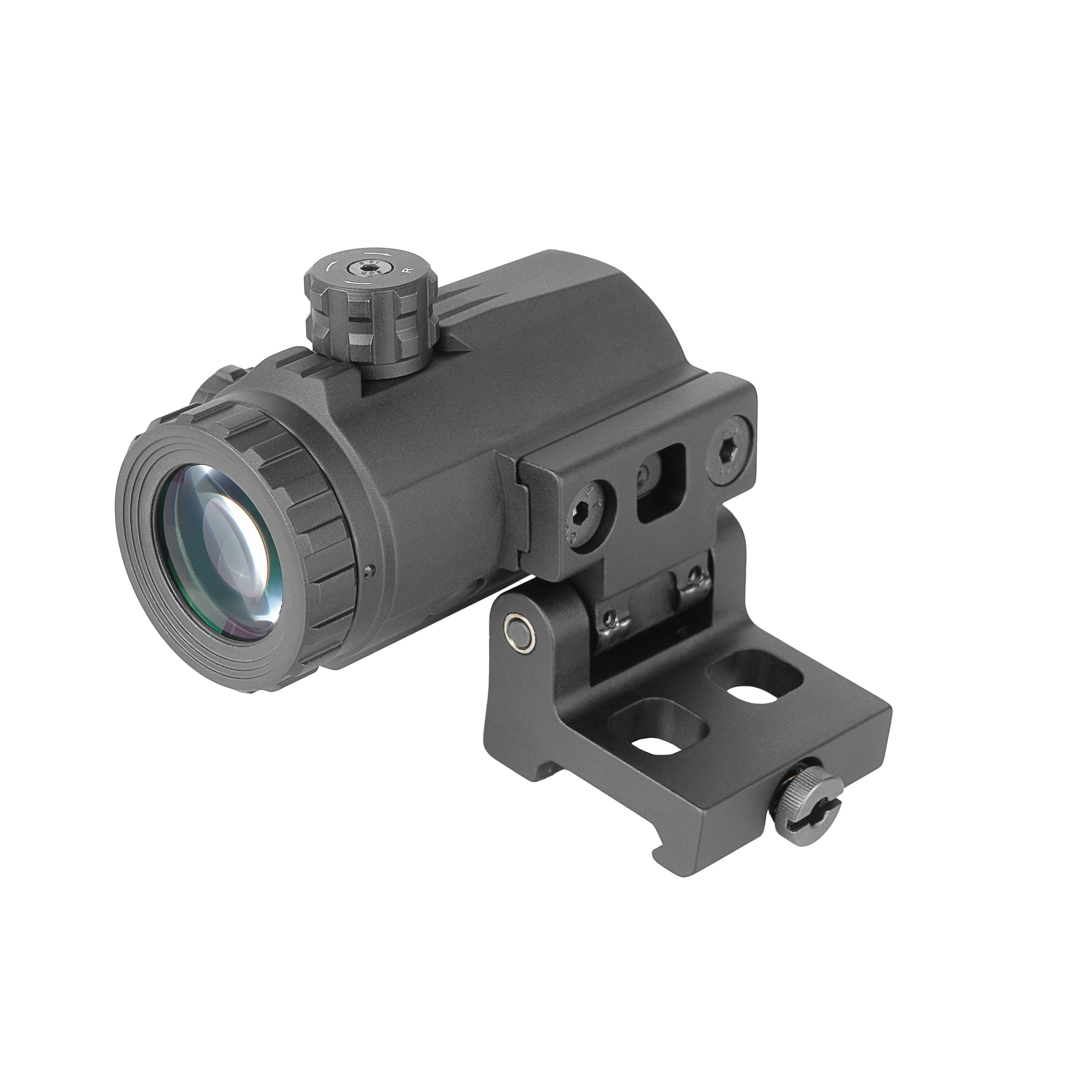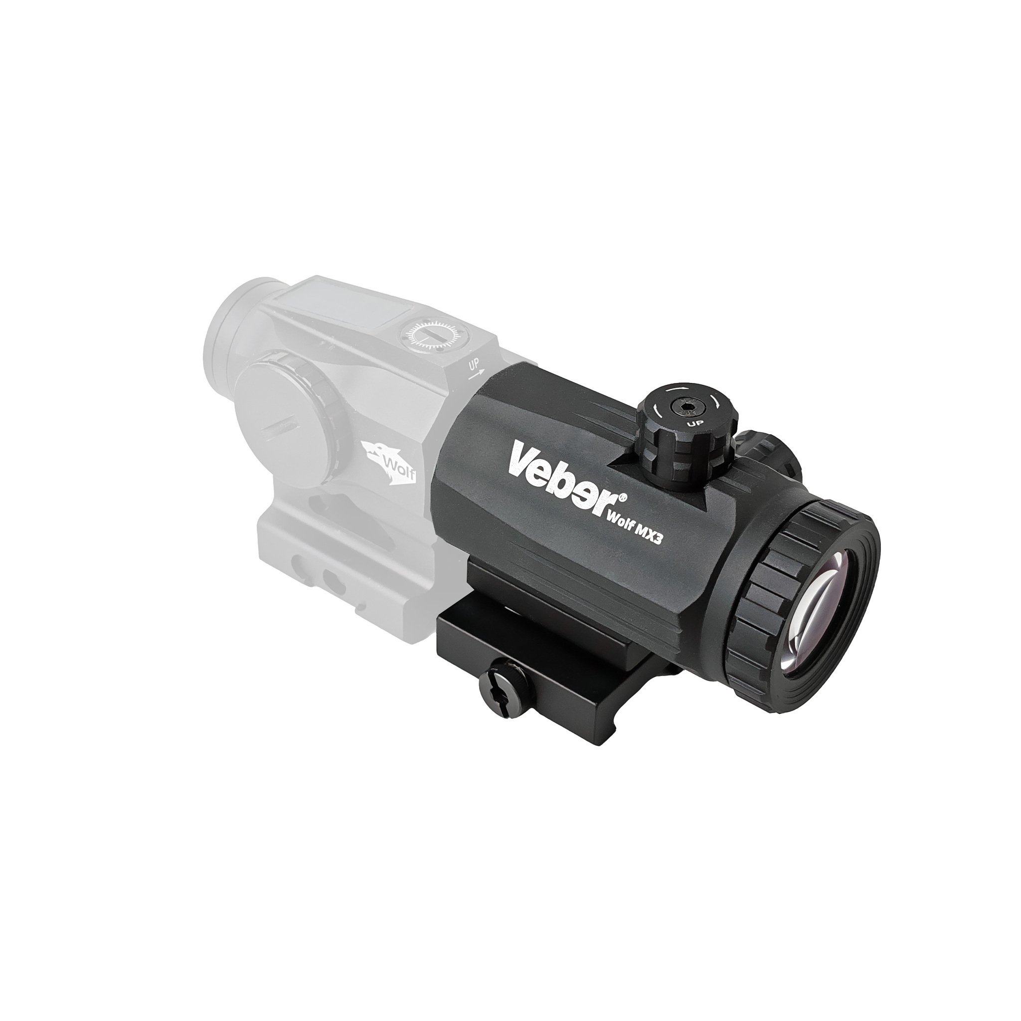 Veber Wolf MX3 – компактное увеличительное устройство (магнифер) с откидным креплением на Weaver. Увеличитель с кратностью 3х устанавливается перед коллиматорным прицелом идентичной высоты для повышения точности стрельбы.
