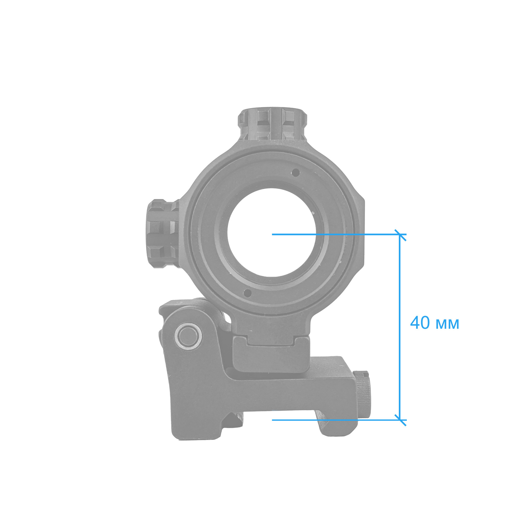 - Устанавливается перед прицелом Red Dot с высотой оптической оси от базы Weaver 40 мм