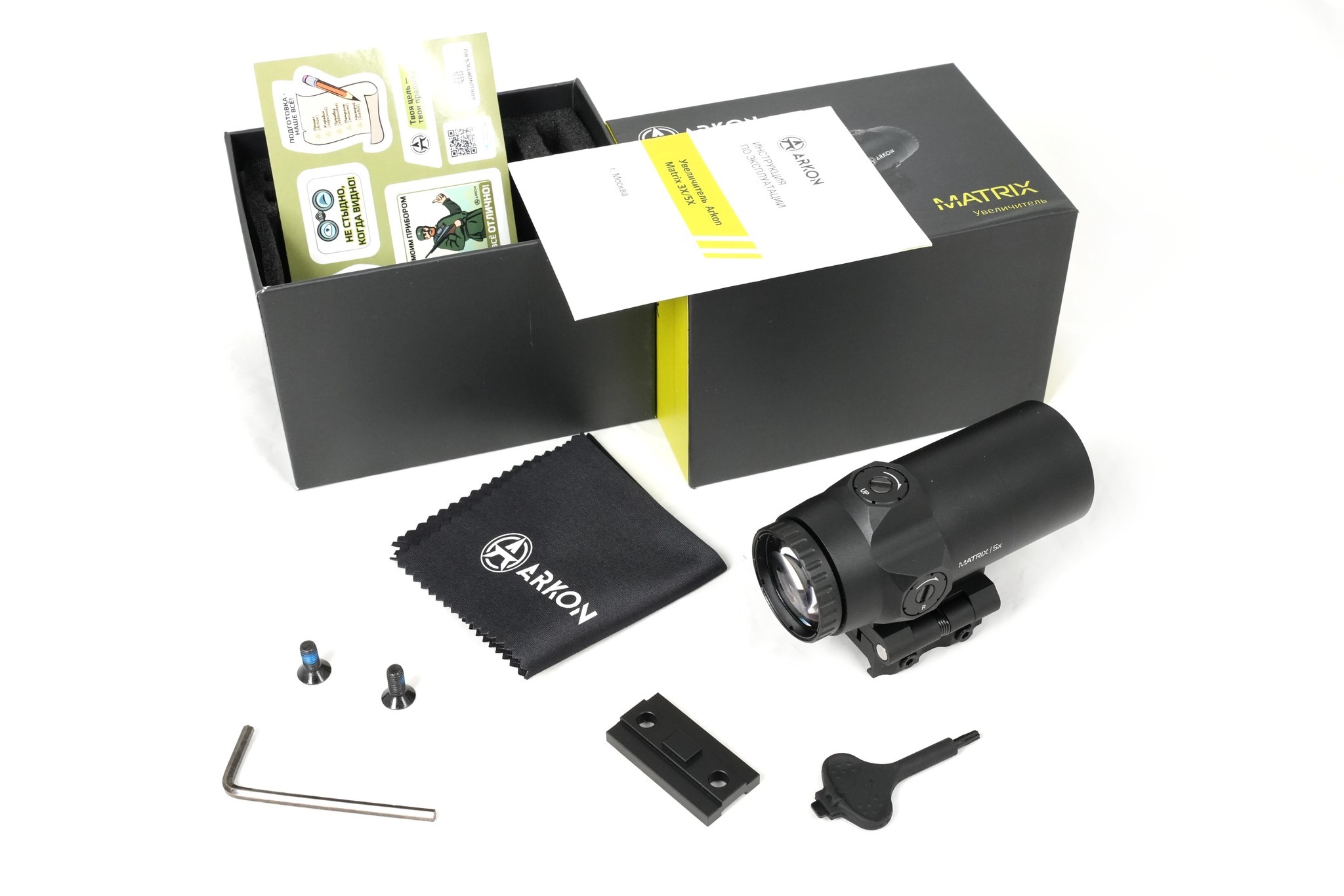 Arkon Matrix 5х30 – компактный прибор с пятикратным увеличением и просветленной оптикой эффективен не только днем, но и при слабом освещении в сумерках. Удобный откидной механизм позволяет оперативно устанавливать увеличитель перед коллиматором и отбрасывать его в нерабочее положение, когда он не требуется. Цельнофрезерованный корпус увеличителя герметичен и с уверенностью держит отдачу любого гражданского оружия.
