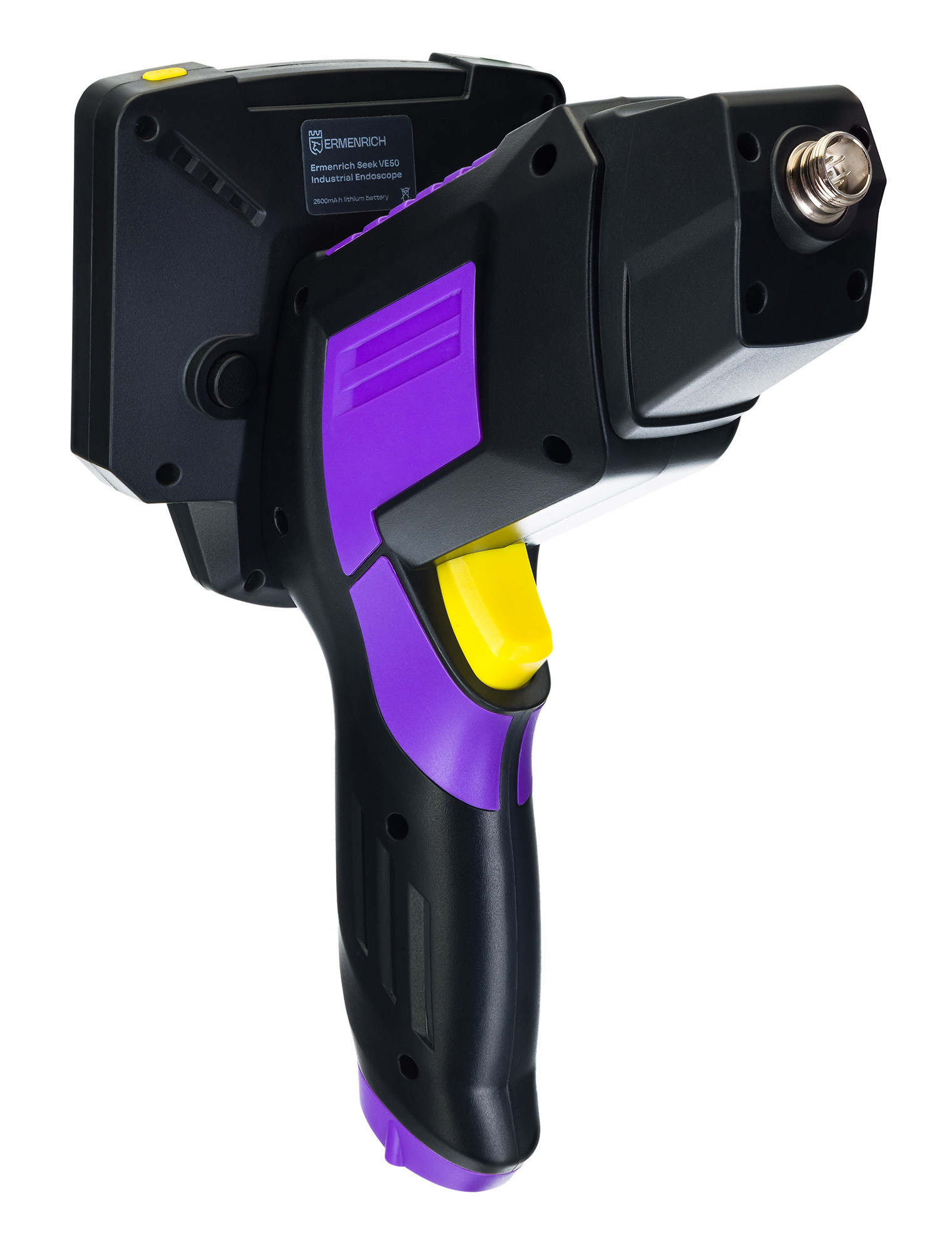 Эндоскоп Ermenrich Seek VE50 с одной камерой прямого обзора и полужестким кабелем длиной 10 м. Диаметр камеры всего 5,5 мм, и она легко проходит в труднодоступные места. Угол обзора составляет 70°, благодаря подсветке 6 светодиодами изображение получается четким. Эндоскоп рекомендуется использовать для диагностики канализационных и вентиляционных труб, осмотра стен на наличие трещин, выявления неисправностей в промышленном оборудовании. Степень герметичности камеры IP67, поэтому можно осматривать объекты под водой, например, при аварийном ремонте канализации или водопровода.
