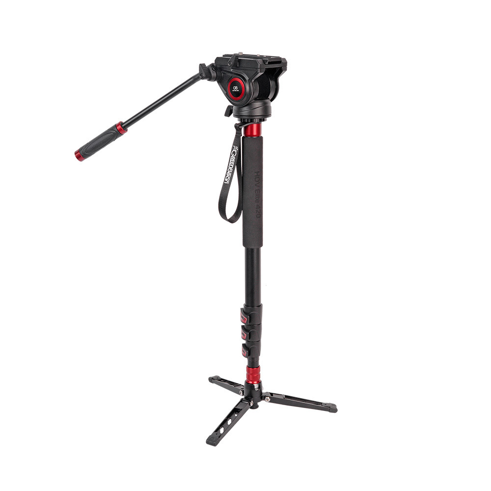 Лёгкий и высокий алюминиевый монопод GreenBean HDV Elite 420 предназначен для работы с компактными профессиональными видеокамерами или DSLR. Монопод имеет основание с шаровой опорой и тремя откидными ножками. Минимальная рабочая высота монопода — 72 см, максимальная рабочая высота — 182 см. Длина монопода в сложенном состоянии — 71 см. Вес монопода 2.15 кг. Для съёмки с нижних точек можно переустановить голову на опору монопода . Опору монопода можно также использовать, как настольный штатив с несъёмной шаровой головкой.