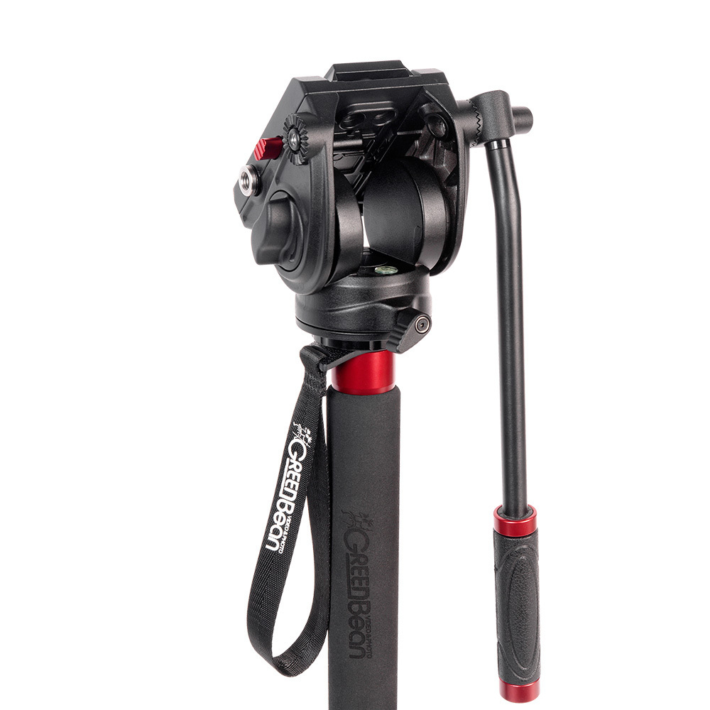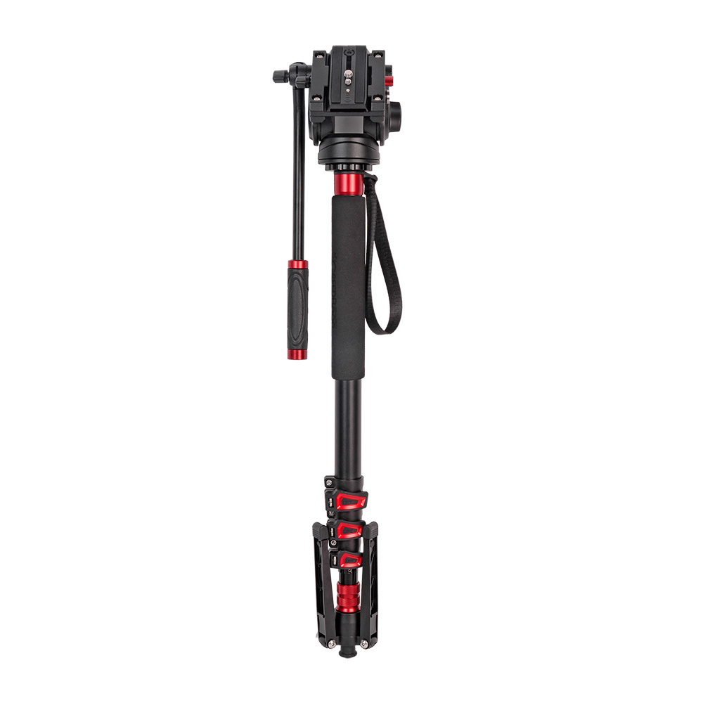 Диаметр секций — 33 / 29 / 26 / 22 мм. При ослаблении клипсового фиксатора — возможна регулировка усилия зажима гайкой под шестигранный ключ (идёт в комплекте). На верхней секции предусмотрены: накладка-рукав из вспененного материала для комфортного удержания монопода в холодное время года и кистевой ремень. На круглой площадка верхней базы монопода находится (реверсивный) винт 1/4? — 3/8?, на который крепится видеоголовка, а при необходимости непосредственно камера. Для выставления камеры по горизонту, в основании головки имеется пузырьковый уровень.