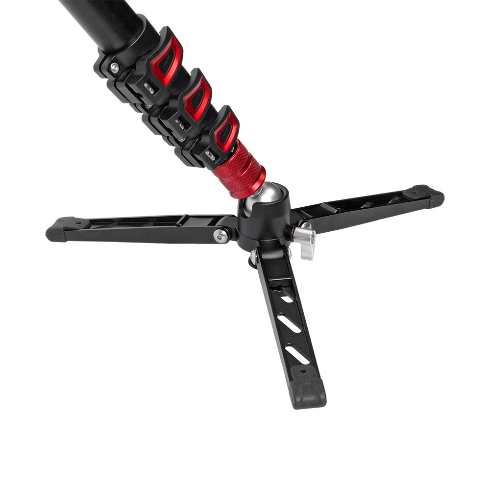 Максимально высокое положение ножек может пригодиться в тех случаях, когда для съёмки с разложенным моноподом не хватает буквально ещё нескольких сантиметров высоты; опору( в этом положении ножек) можно использовать и как настольный штатив с несъёмной шаровой головкой.