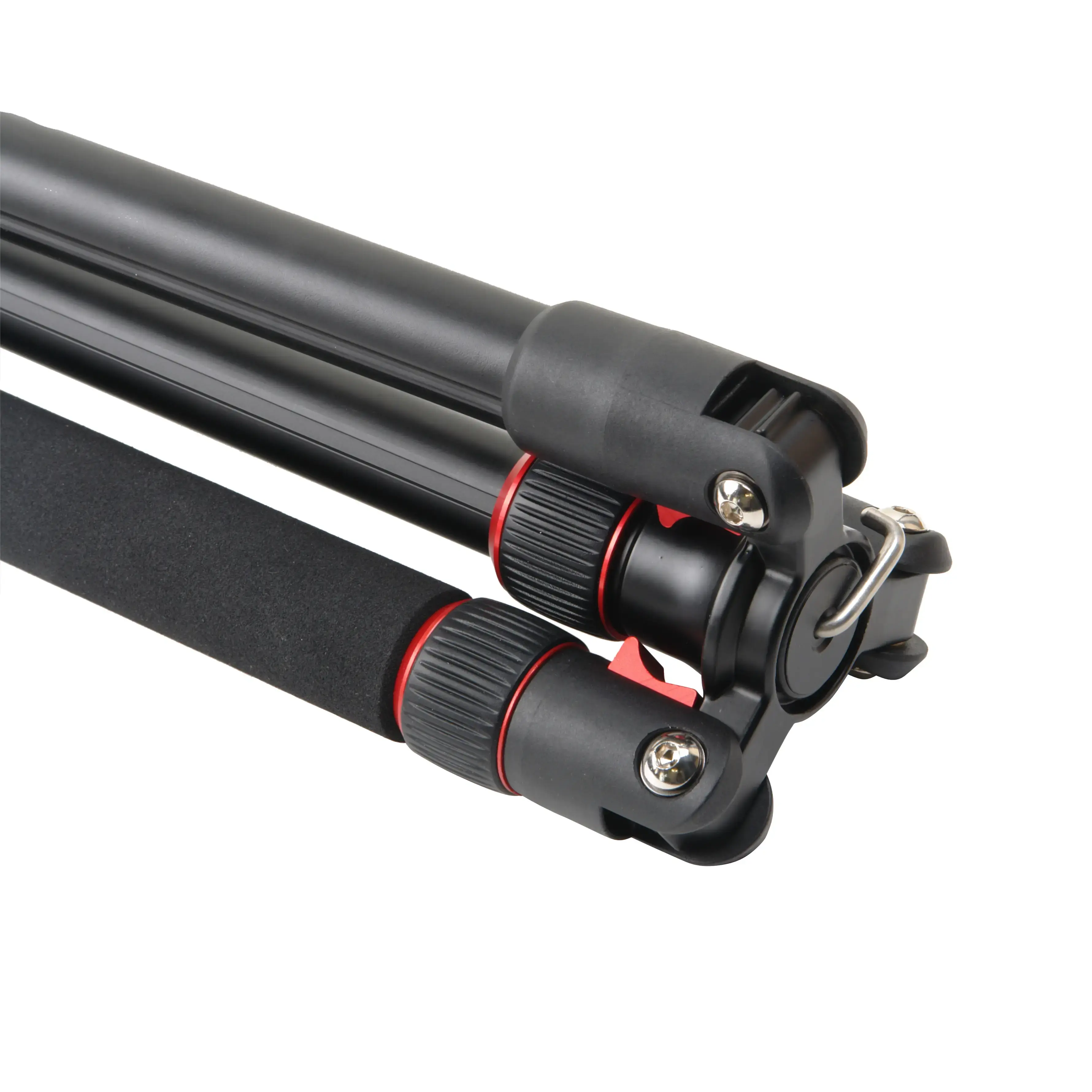 Одна из ног штатива съемная, соединив её с центральной колонной и головкой можно получить монопод высотой от 50 до 142 см, который незаменим в репортажных съёмках.
