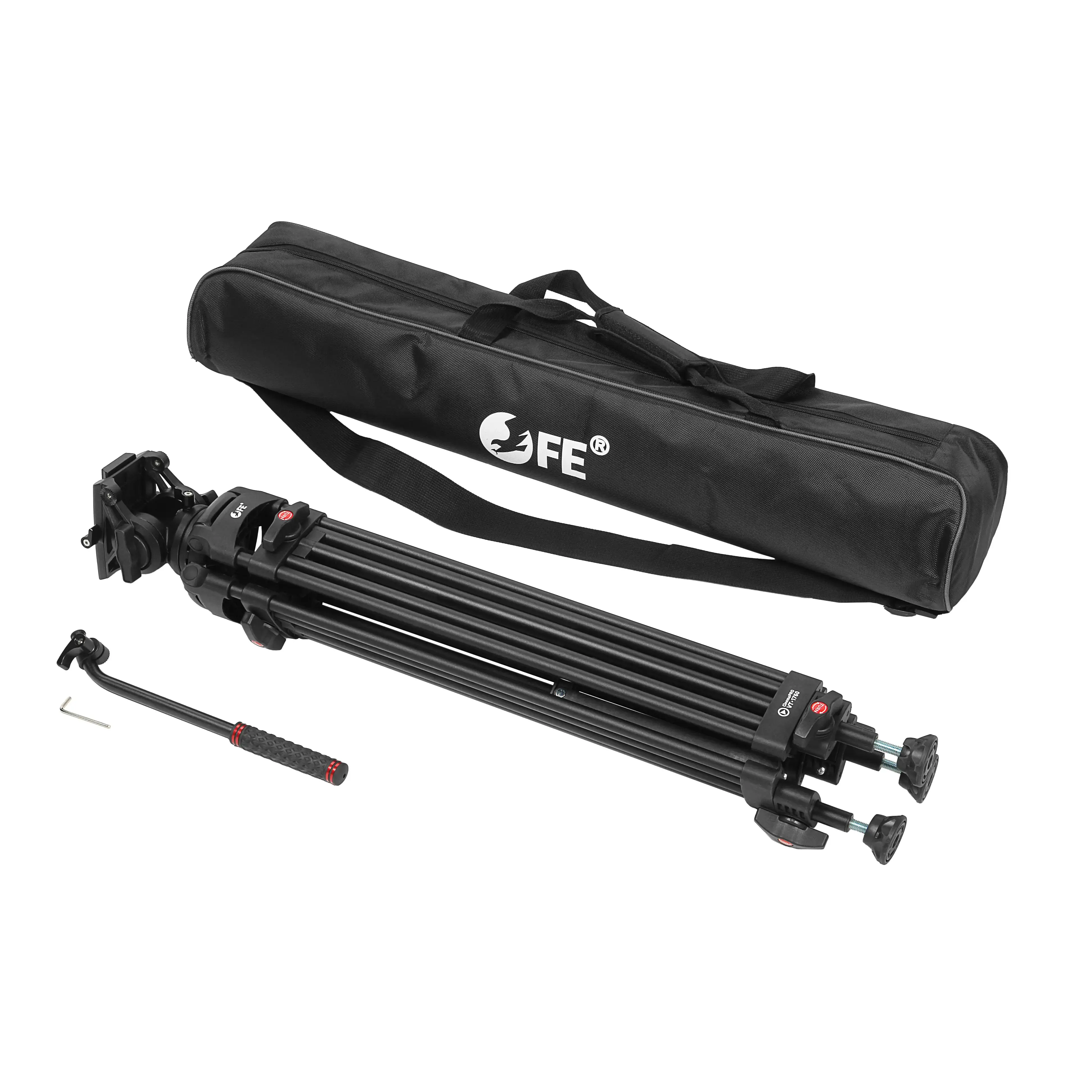 2D-жидкостная видеоголовка штатива вращается вокруг своей оси на 360 и наклоняется в пределах от +90° до -80° для проведения плавного горизонтального и вертикального панорамирования. Головка изготавливается из легкого и прочного алюминиево-магниевого сплава, оборудована быстросъемной площадкой, съемной рукояткой и пузырьковым уровнем.