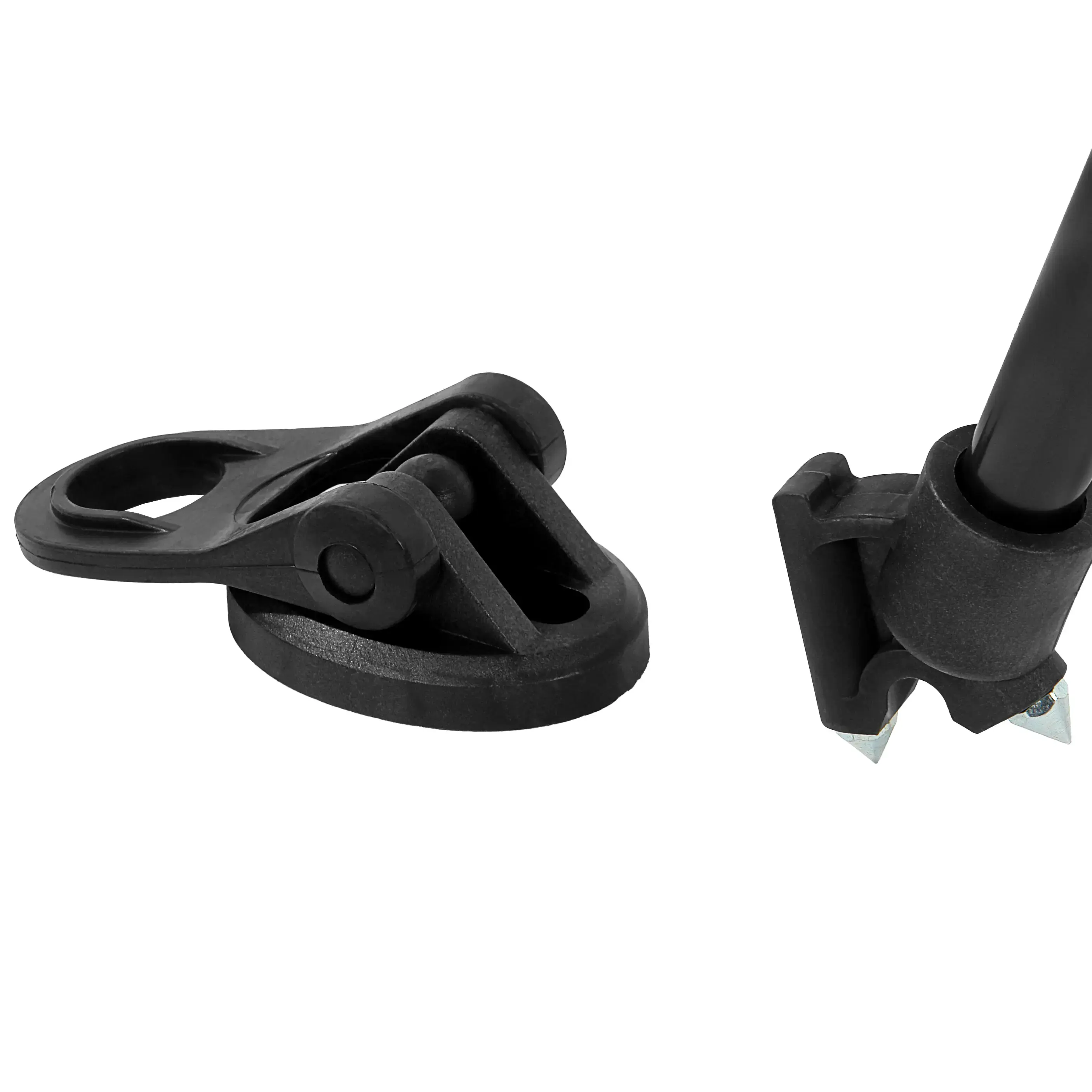 Поперечная растяжка, прикрепленная к средним секциям трипода, в рабочем положении опор штатива располагается горизонтально, определяет размах ног и усиливает конструкцию.