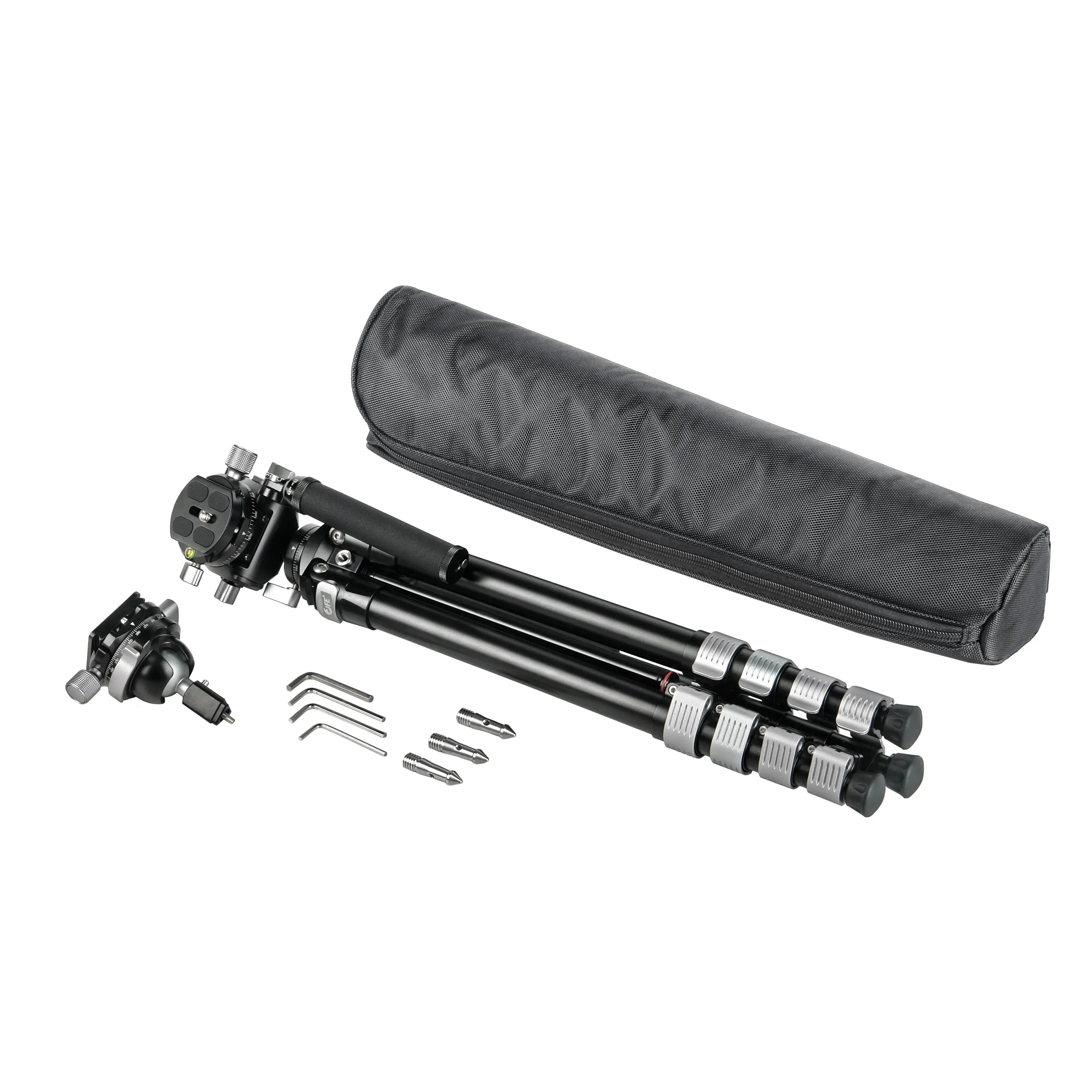 Штатив состоит из пяти секций, которые надёжно фиксируются с помощью тугих клипсовых зажимов. Степень затяжки зажимов регулируется шестигранниками (входят в комплект). Благодаря большому количеству секций, штатив в сложенном виде занимает мало места — всего 49 см в длину, при этом конструкция остаётся устойчивой и надёжной.