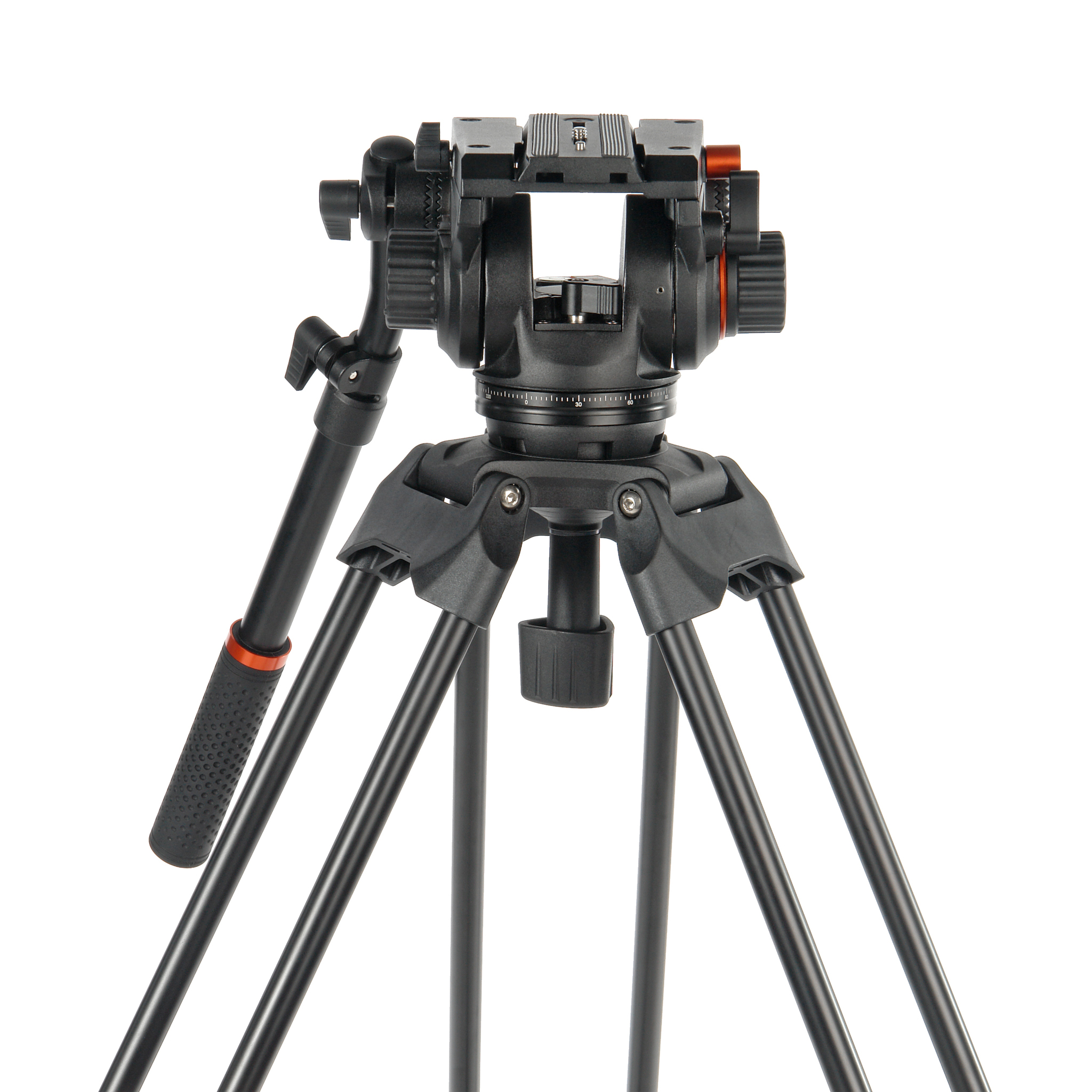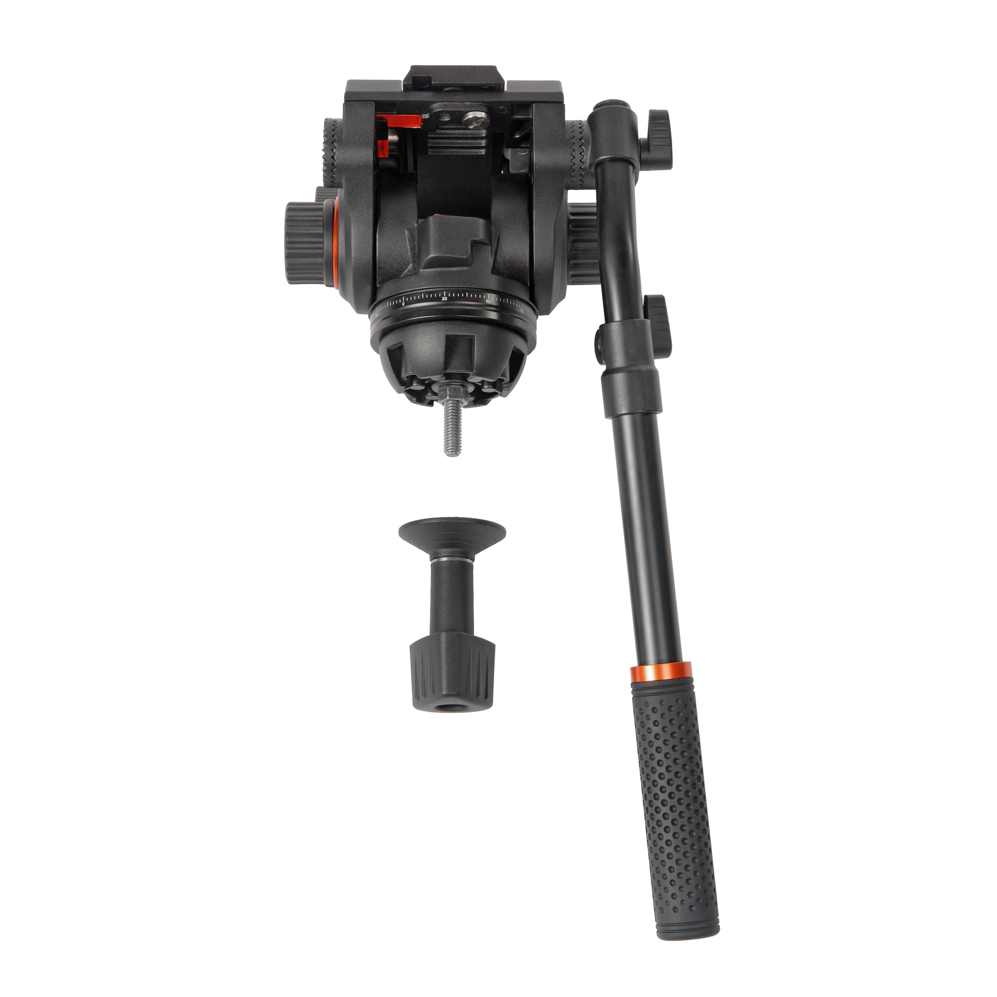Съёмная голова с жидкостным демпфированием и системой постоянного контрбаланса поворачивается на 360? по горизонтали, наклоняется на углы от -60° до +90°, имеет независимые фиксаторы панорамирования, четырёхсекционный регулятор контрбаланса и бесступенчатый регулятор вертикального демпфирования.