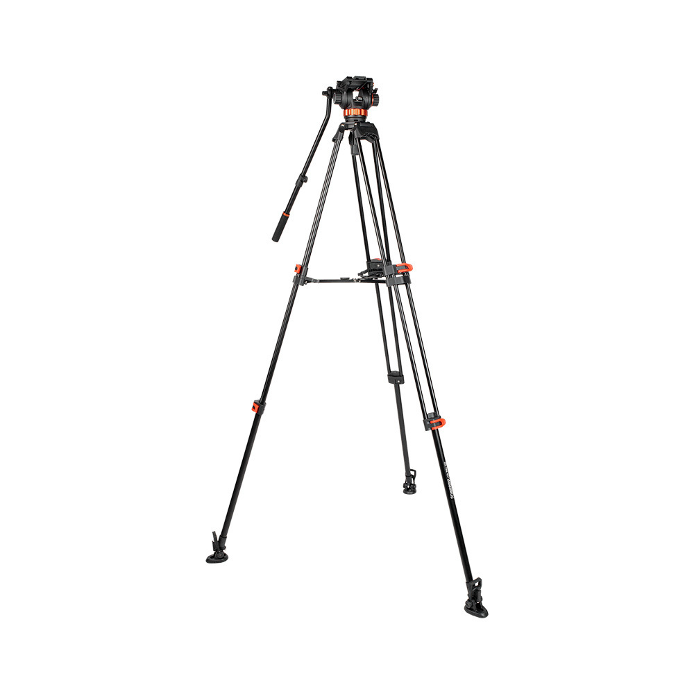 Съёмная голова с жидкостным демпфированием и системой регулируемого контрбаланса. Поворачивается на 360? по горизонтали, наклоняется на углы от -60° до +90°, имеет независимые фиксаторы панорамирования, четырёхсекционный регулятор контрбаланса и бесступенчатые регуляторы вертикального и горизонтального демпфирования.